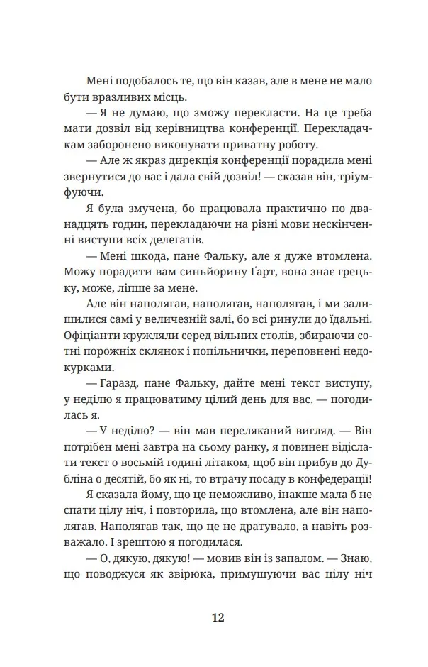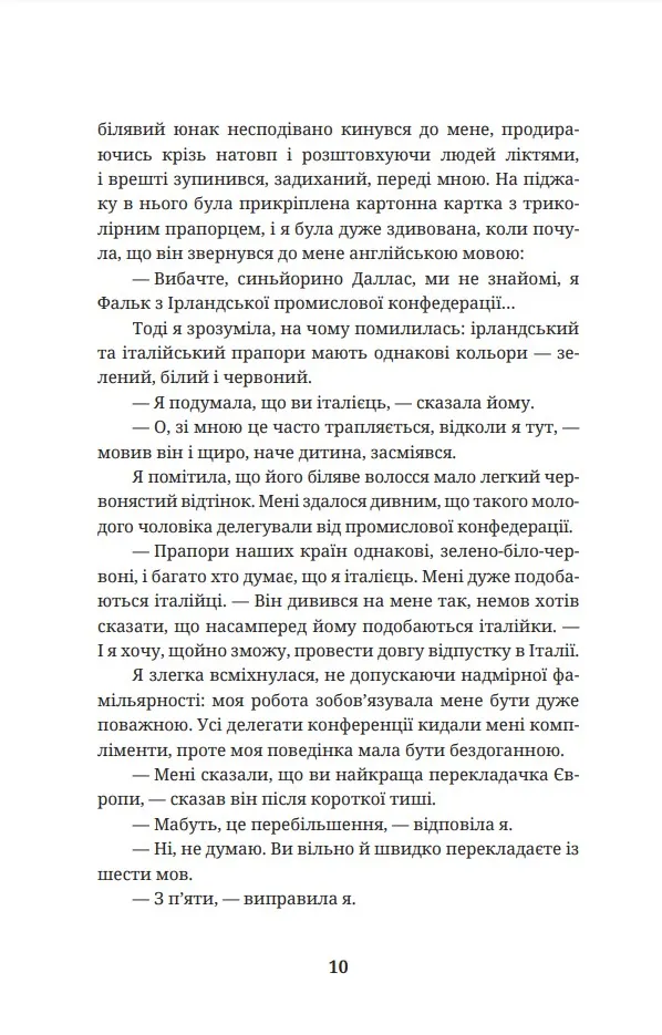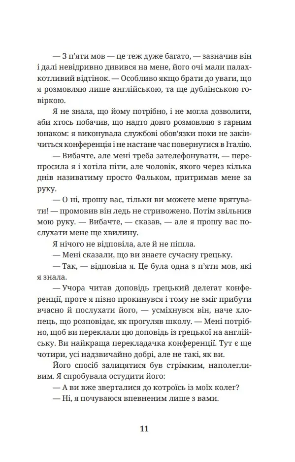 Все починається з Орнелли Даллас, італійської перекладачки, яка на одній міжнародній конференції знайомиться з харизматичним ірландським посадовцем на ім’я Фальк. Іскра між ними спалахує одразу, і вони закохуються один в одного. Фальк просить Орнеллу допомогти з перекладом, але поступово починає демонструвати дещо дивну поведінку, яка насторожує дівчину. Чи справді він закоханий, чи за цими дивними проявами ховається щось більше?