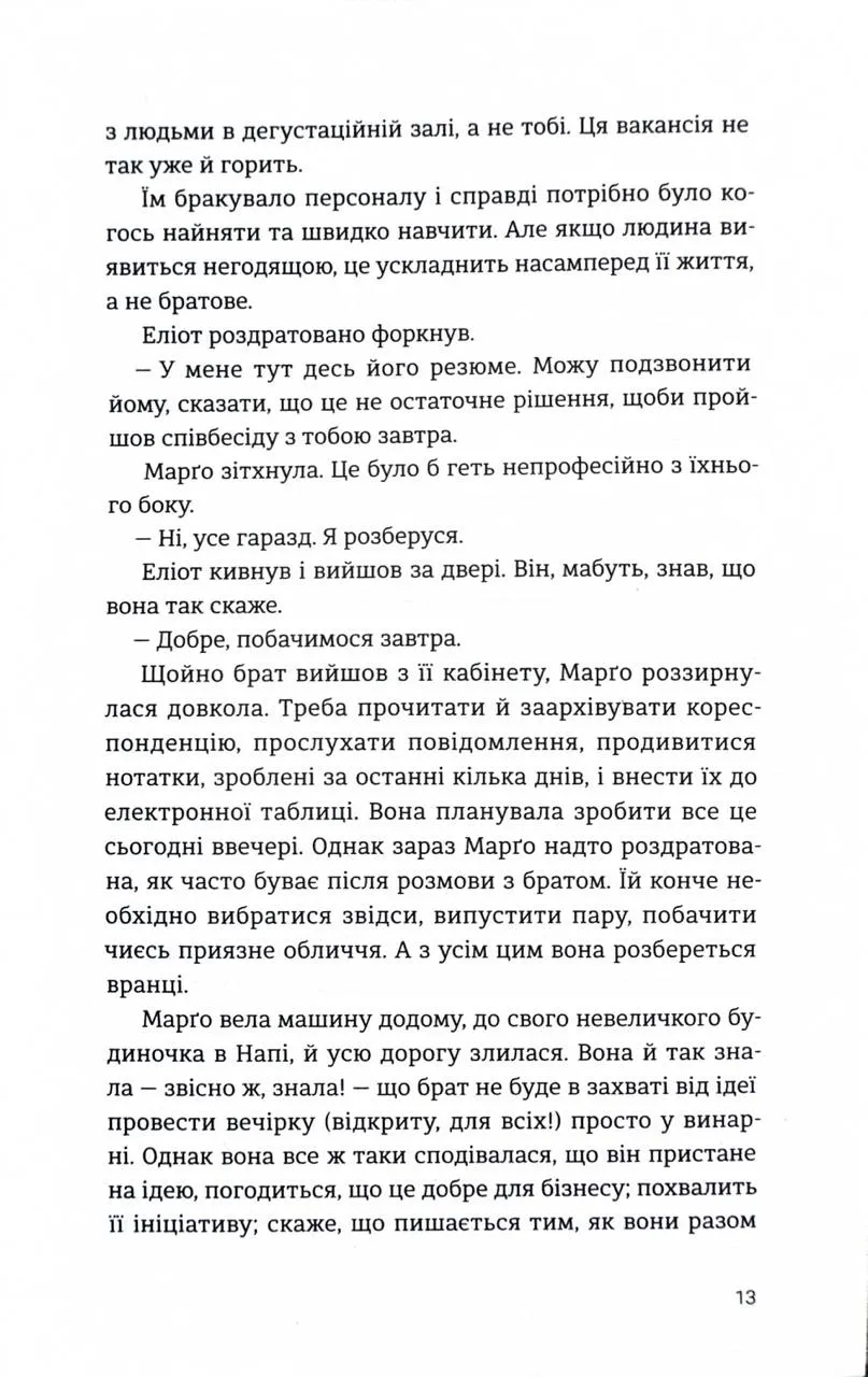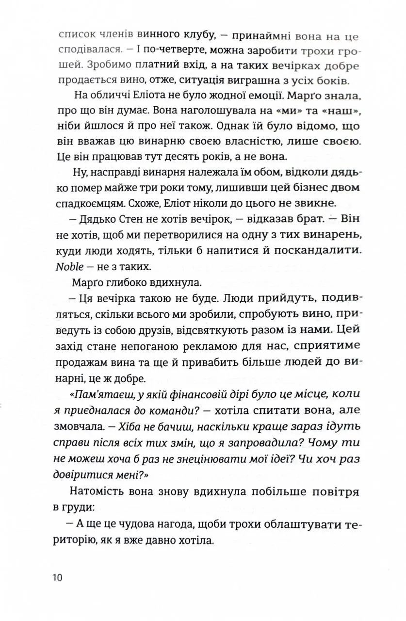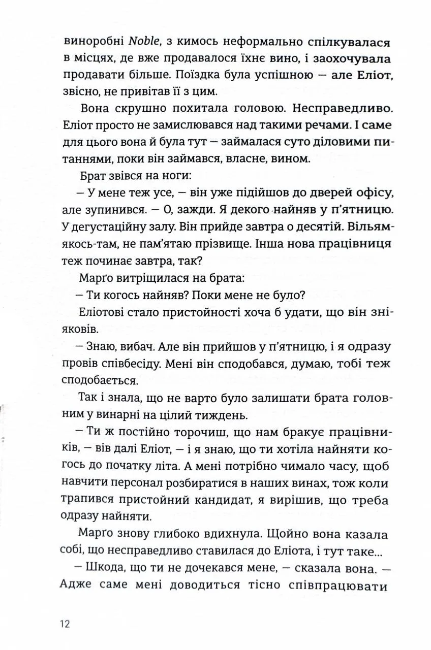 Головна героїня роману, Марґо Нобл, працює співвласницею сімейної винарні, яка розташована в мальовничій долині Напа. Її робота приносить як радість, так і стрес, і під час зайнятого графіка вона все більше відчуває потребу у відпочинку. Додайте до цього непрості стосунки із родиною, і зрозумієте, що Марґо потребує паузи.