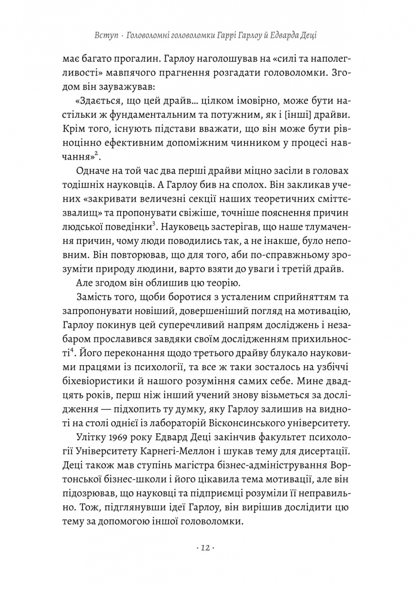 «Драйв. Дивовижна правда про те, що нас мотивує» — унікальна книжка, яка не втрачає своєї актуальності вже понад десять років і допомагає бізнесам перейти на новий підхід управління людьми, а працівникам — змінити сприйняття світу і спосіб життя.