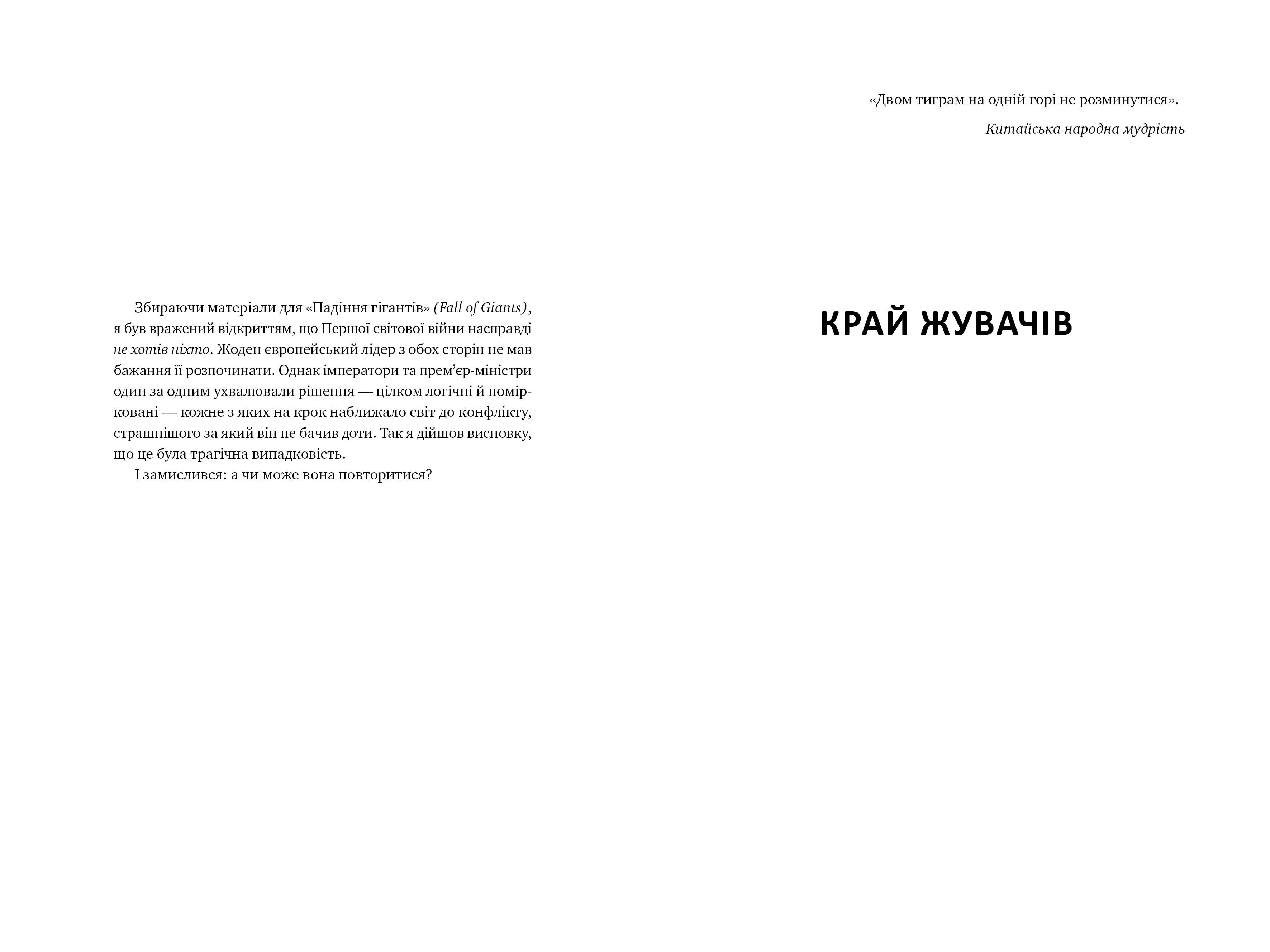 Книжка досліджує складні геополітичні реалії сучасного світу та можливі наслідки нестабільності на міжнародній арені.