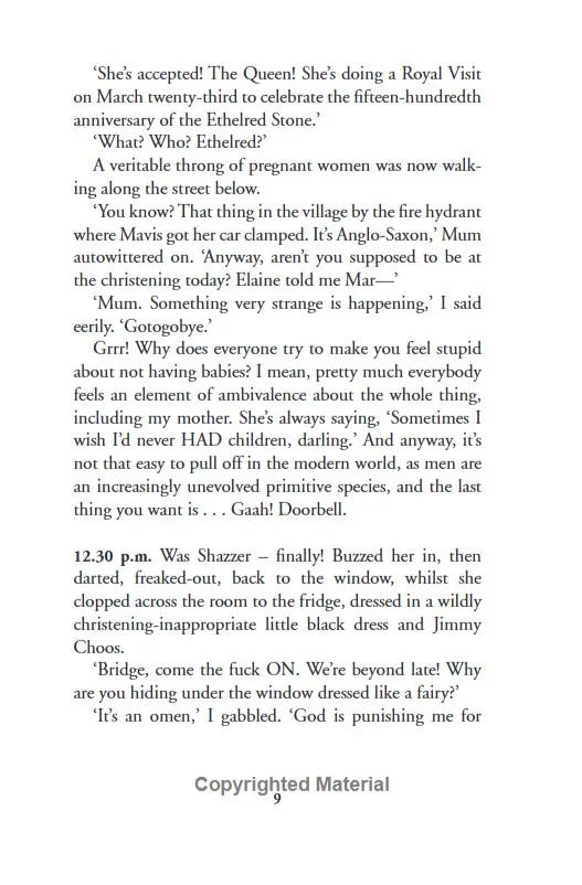 ‘Bridget is a creation of comic genius’ NICK HORNBY8.45 P.M. Realise there have been so many times in my life when have fantasised about going to a scan with Mark or Daniel: just not both at the same time.Before motherhood, before marriage, BRIDGET JONES, with biological clock ticking very, very loudly, finds herself unexpectedly pregnant at the eleventh hour.