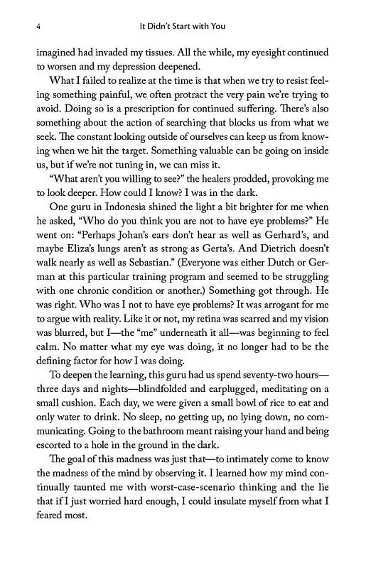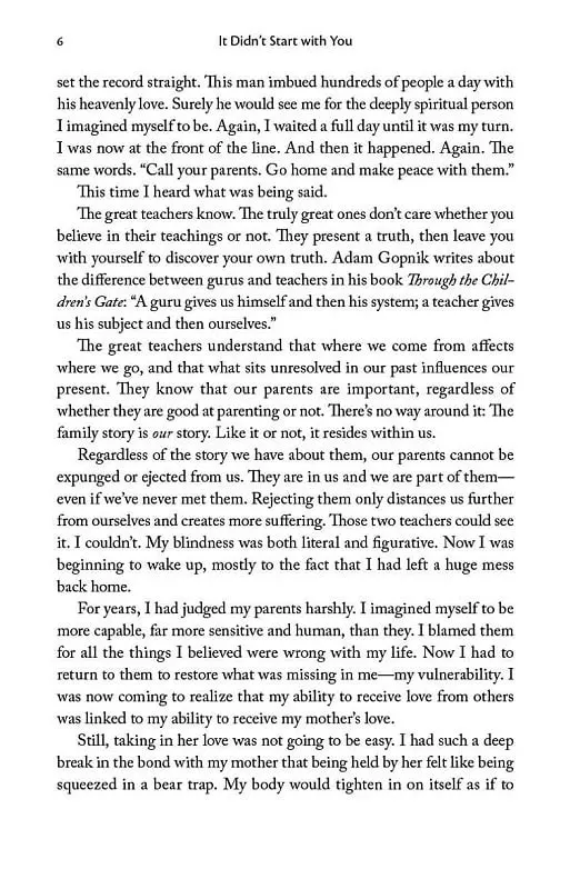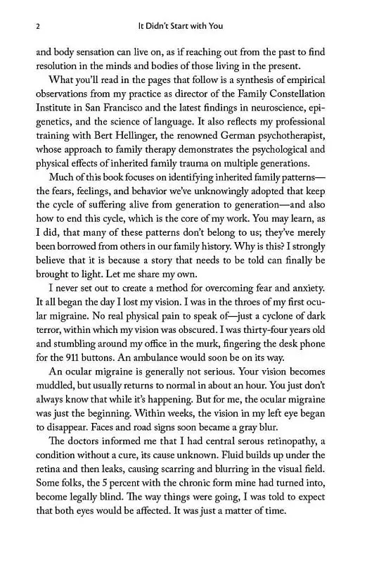 Depression. Anxiety. Chronic pain. Phobias. Obsessive thoughts. The evidence is compelling: the root of these difficulties may reside in the traumas of our parents, grandparents and even great-grandparents. The latest research affirms that traumatic experience is passed on to future generations and that this emotional inheritance, hidden in everything from our gene expression to everyday language, plays a greater role in our health than ever previously understood.Building on the work of leading experts in neuroscience and posttraumatic stress, Mark Wolynn has developed a pioneering approach to identifying and breaking these inherited family patterns. Having worked with individuals and groups on a therapeutic level for more than twenty years, It Didn't Start With You is his accessible, pragmatic and transformative guide to a method that has helped thousands of people reclaim their lives.