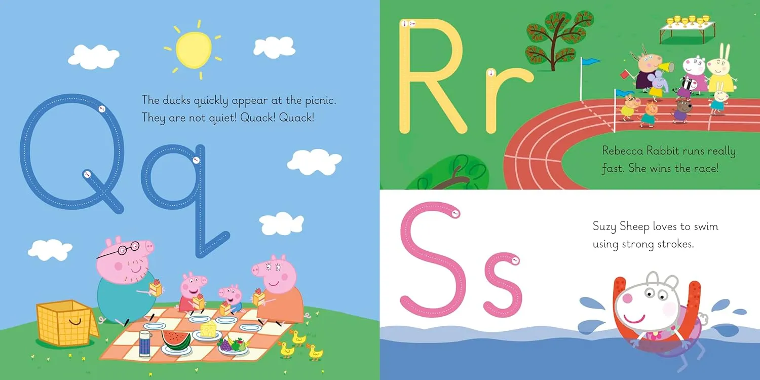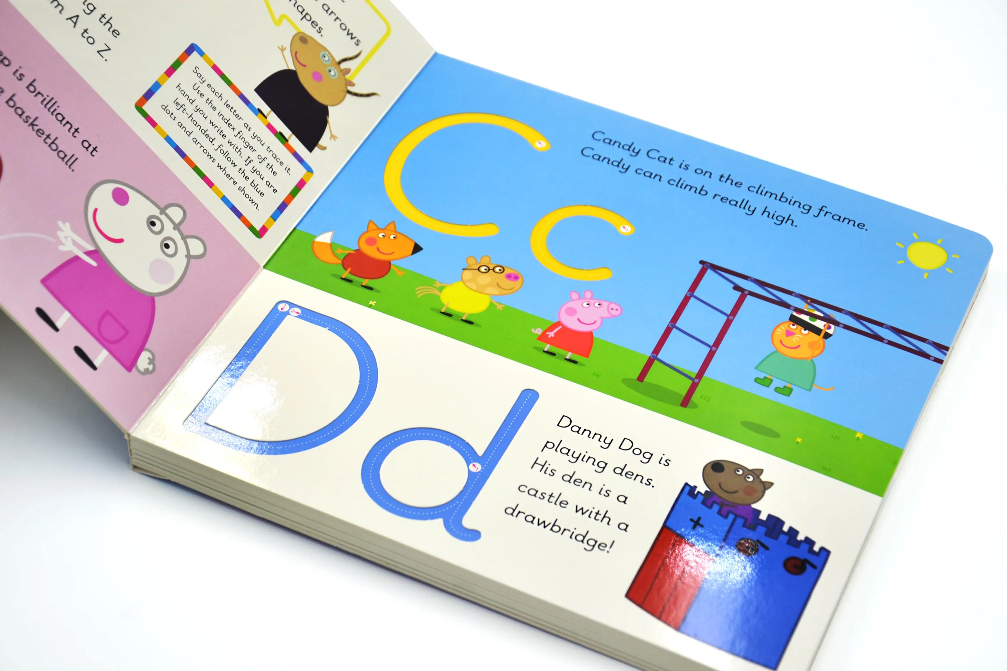 Learn with Peppa: Peppa's Alphabet Adventure is a sturdy, innovative board book with diecut letter shapes on every page and on the cover, helping to teach both alphabetical order and key pre-writing skills.Go on an adventure from A-Z with Peppa and her friends!This interactive alphabet book helps children recognize both the upper- and lowercase letter shapes in alphabetical order and practise key pre-writing skills.Encourage children to trace over each letter shape with their index finger, following the arrow guides for correct letter formation. Can they also find these letters in the sentences?Let Peppa support your little ones on their early learning adventure in Learn with Peppa.