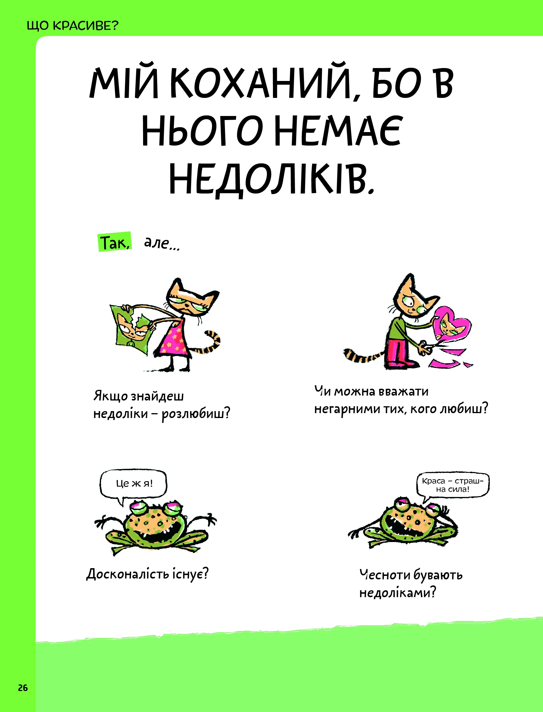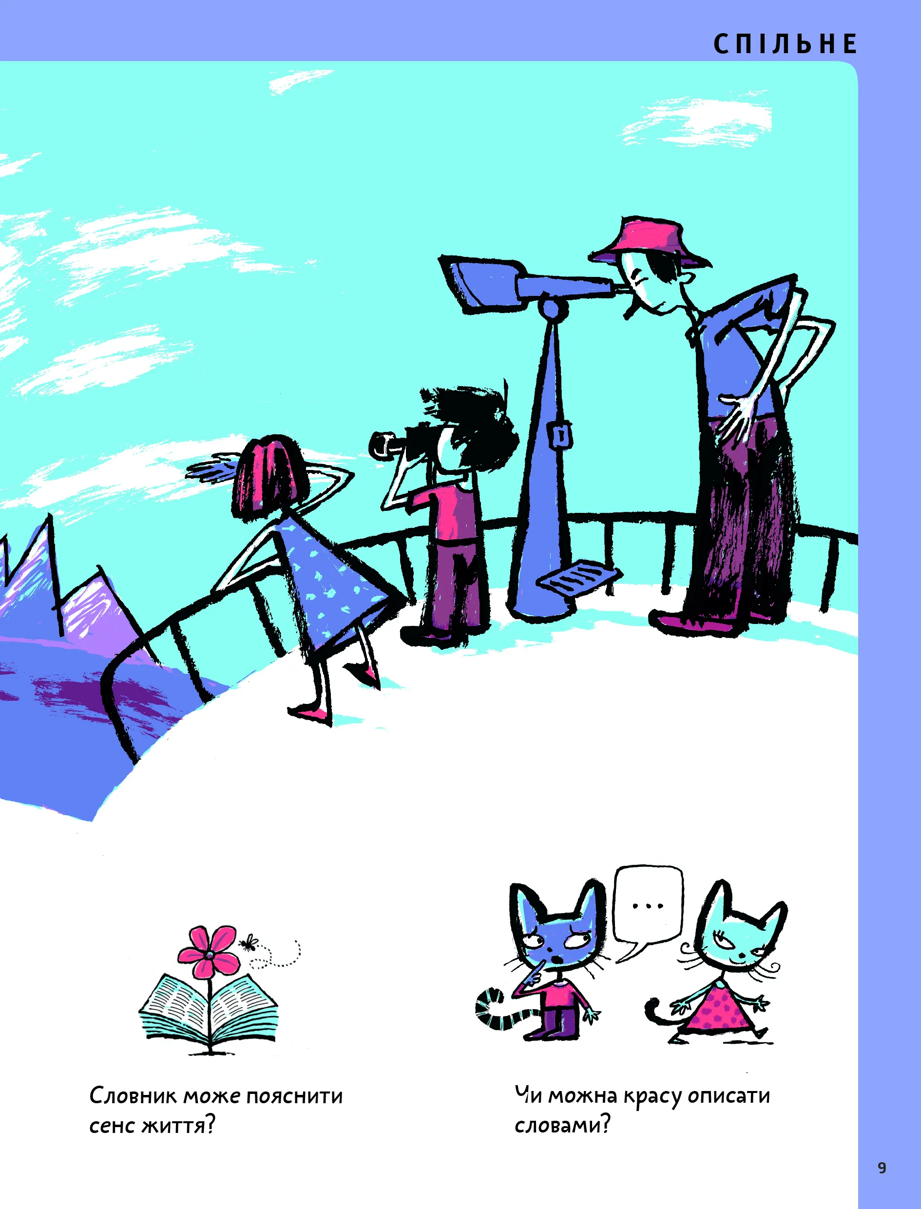 Ця книга орієнтована на дітей та їхніх батьків, допомагаючи їм розвивати здатність до рефлексії та творчості. Автор ставить філософські питання, такі як: