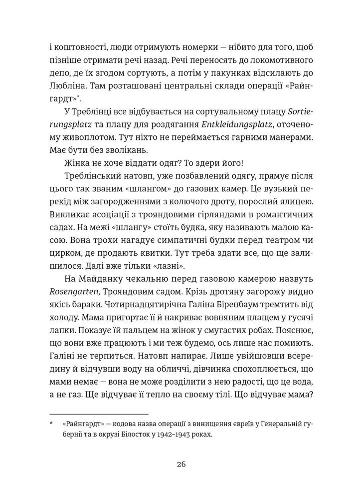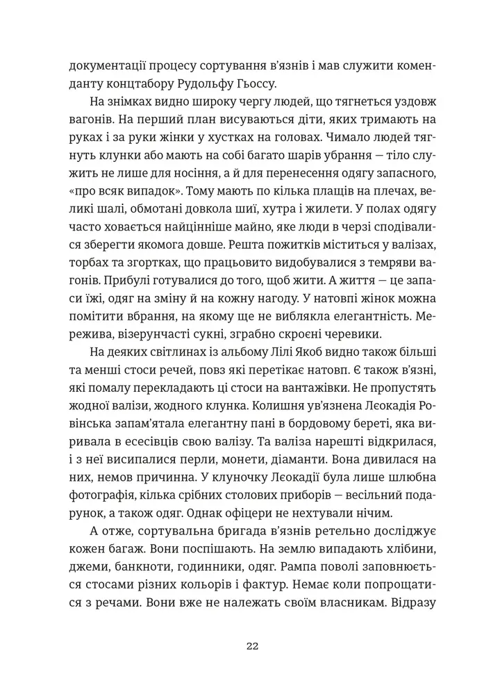 Це дослідження ролі матеріального у виживанні, пам’яті та боротьбі за людську гідність. Авторка аналізує: