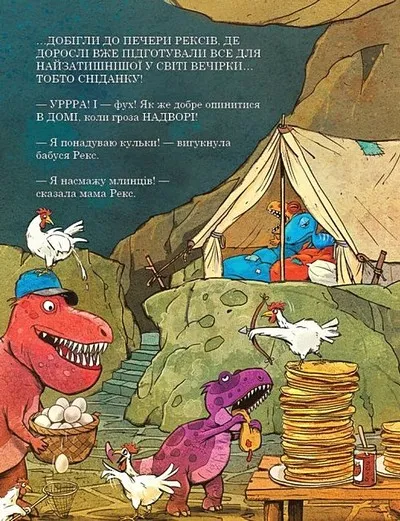 Расмусові нічого не залишається, окрім як іти слідом за другом, адже наближається буря. Чи зможуть динозаврики подолати страхи та пережити ніч у наметах? Захоплююча історія про дружбу, підтримку та подолання страхів.