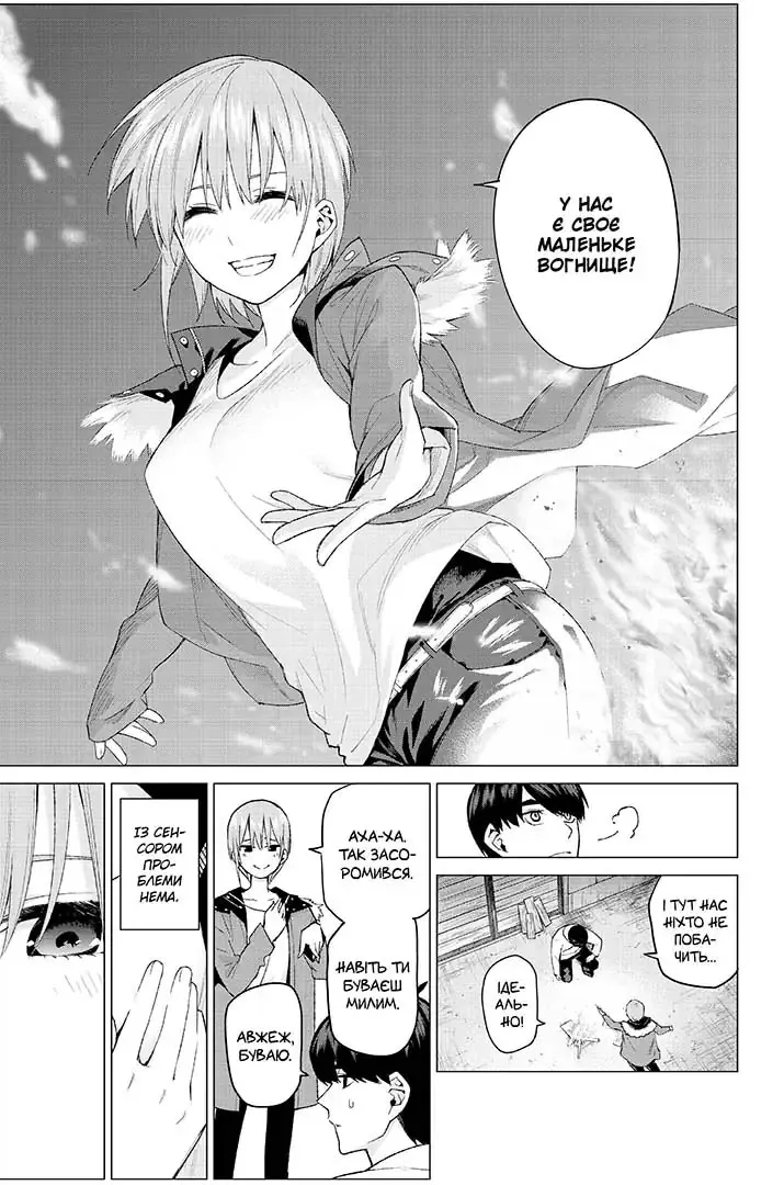 Ніно, одна з сестер, знаходить оригінальний вихід із ситуації: застосовує хитрий підхід і забезпечує сприятливий розвиток подій. Це дозволяє уникнути звільнення, а дівчата разом із Футаро відправляються у подорож. Чи допоможе ця поїздка поліпшити взаєморозуміння між викладачем і його ученицями?