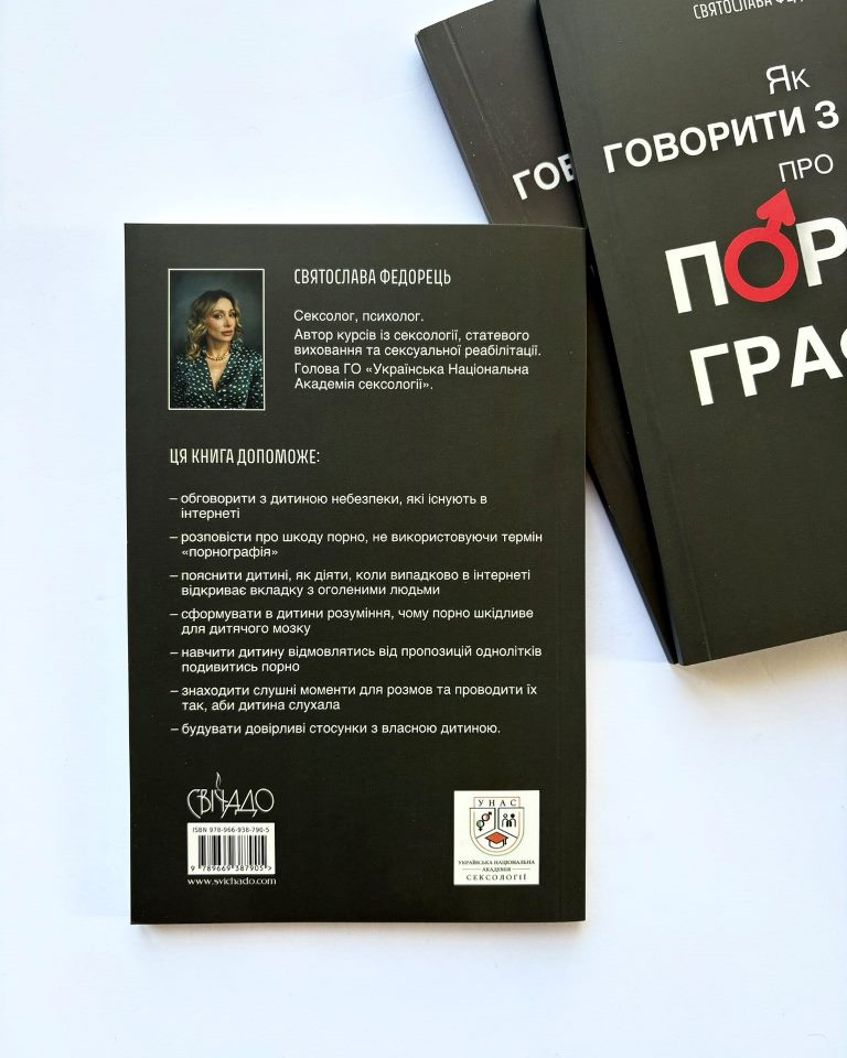 У сучасному технологічному світі, який стрімко змінюється, дітей чекає багато викликів і спокус. Одним з найбільш проблемних аспектів"цифрового життя" є легкий доступ до порнографії. Часто ми, батьки,навіть не усвідомлюємо, що діти, як самостійно, так і під впливомоточення, можуть цікавитися порнографічними матеріялами вже з молодшого шкільного віку. Ця книга допоможе: - обговорити з дитиною небезпеки, які існують в інтернеті; - розповісти про шкоду порно, не використовуючи термін "порнографія"; - пояснити дитині, як діяти, коли випадково відкриває в мережі вкладку з оголеними людьми; - сформувати розуміння, чому порно шкідливе для дитячого мозку; - навчити дитину відмовлятись від пропозицій однолітків подивитись порно; - знаходити слушні моменти для розмов і проводити їх так, аби дитина слухала; - будувати довірливі стосунки з власною дитиною. Практичні поради, викладені в книзі, стануть в нагоді, щоб розпочати з дитиною відверту, довірливу розмову і відповісти на всі запитання. Для широкого кола читачів