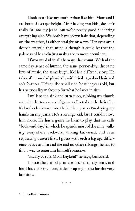 From #1 Sunday Times bestselling author of It Ends With Us, Colleen Hoover's romantic, emotion-packed debut novel unforgettably captures all the magic and confusion of first love, as two young people forge an unlikely bond before discovering that fate has other plans for them.Following the unexpected death of her father, eighteen-year-old Layken becomes the rock for both her mother and younger brother. She appears resilient and tenacious, but inside, she's losing hope. Then she meets her new neighbour Will, a handsome twenty-one-year-old whose mere presence leaves her flustered and whose passion for poetry slams thrills her.Not long after a heart-stopping first date during which each recognizes something profound and familiar in the other, they are slammed to the core when a shocking discovery brings their new relationship to a sudden halt. Daily interactions become impossibly painful as they struggle to find a balance between the feelings that pull them together and the forces that tear them apart.