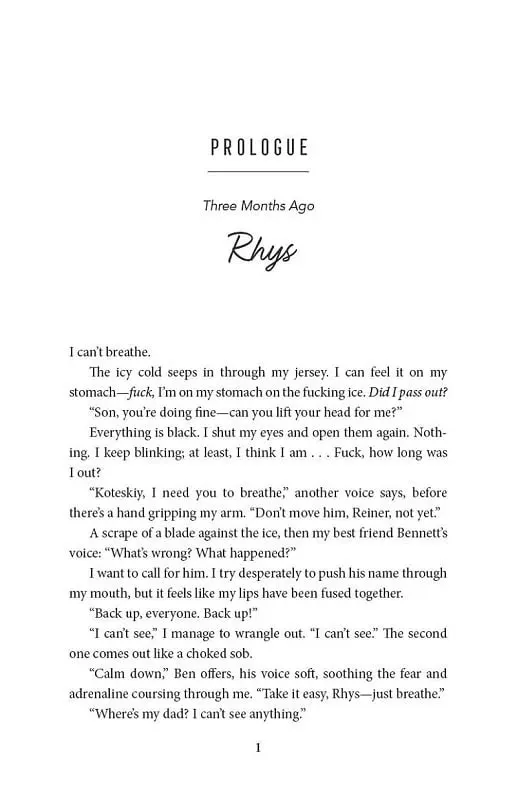 Ріс Котескі повернувся — принаймні, мав би. Минулого року під час Frozen Four капітан хокейної команди Університету Вотерфелл і спадкоємець спадщини НХЛ зазнав жорсткого удару, що призвів до струс мозку та нового почуття дискомфорту на льоду. Його переслідують кошмари та панічні атаки щоразу, коли він намагається вийти на ковзанку. Тепер Ріс не впевнений, чи зможе коли-небудь знову грати — або чи взагалі захоче.