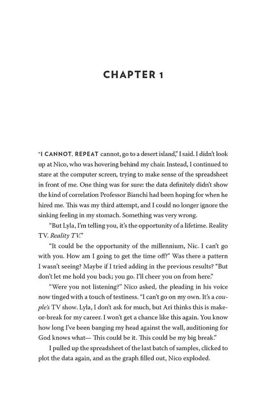 Тому вона точно не може все кинути, щоб поїхати на безлюдний острів разом зі своїм бойфрендом-актором Ніко та знятися в новому реаліті-шоу «Одна ідеальна пара», яке, на думку Ніко, стане його шляхом до великої слави… Чи може?