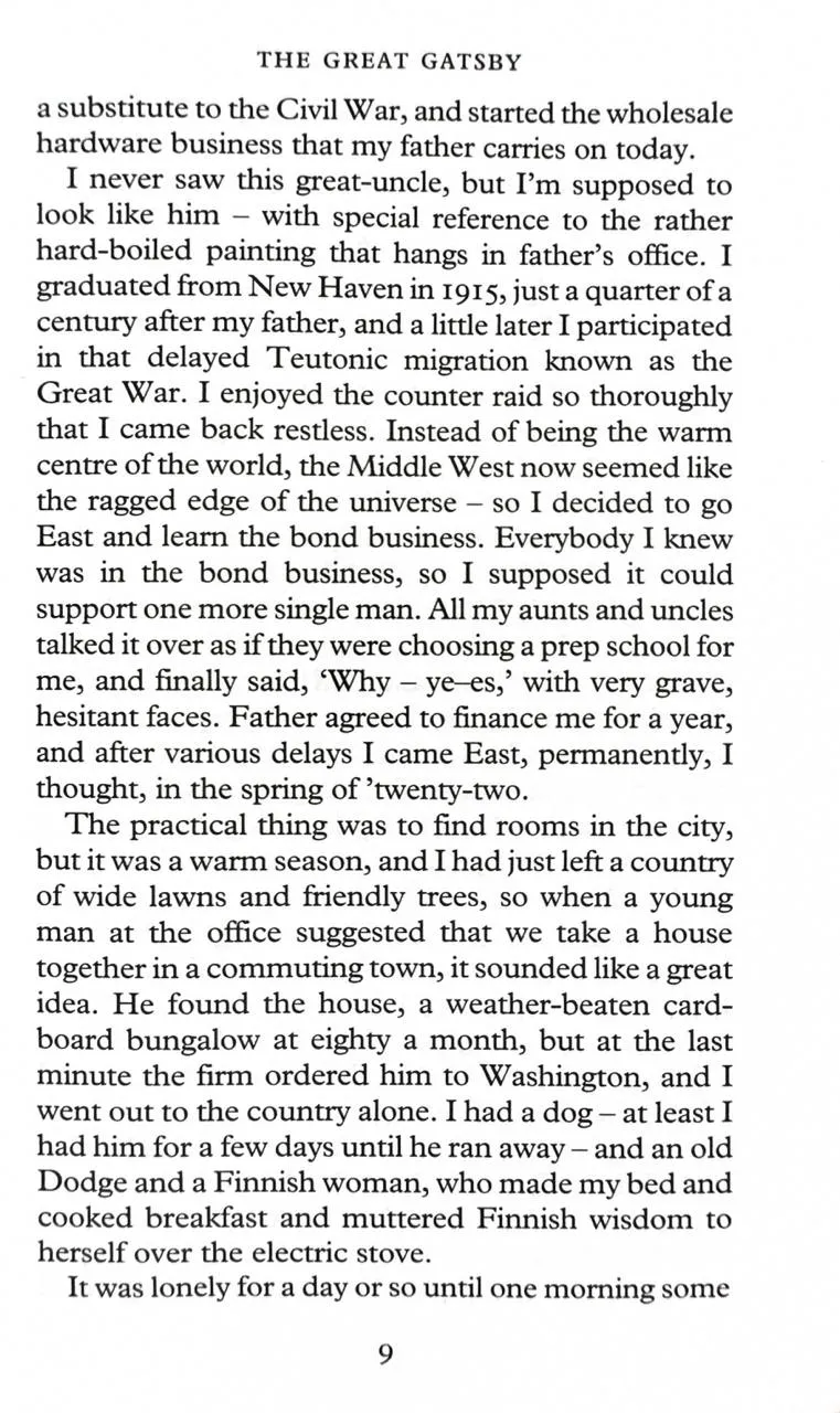 The Great Gatsby lives mysteriously in a luxurious Long Island mansion, playing lavish host to hundreds of people. And yet no one seems to know him or how he became so rich. He is rumoured to be everything from a German spy to a war hero. People clamour for invitations to his wild parties. But Jay Gatsby doesn't heed them. He cares for one person alone - Daisy Buchanan, the woman he has waited for all his life. Little does he know that his infatuation will lead to tragedy and end in murder.