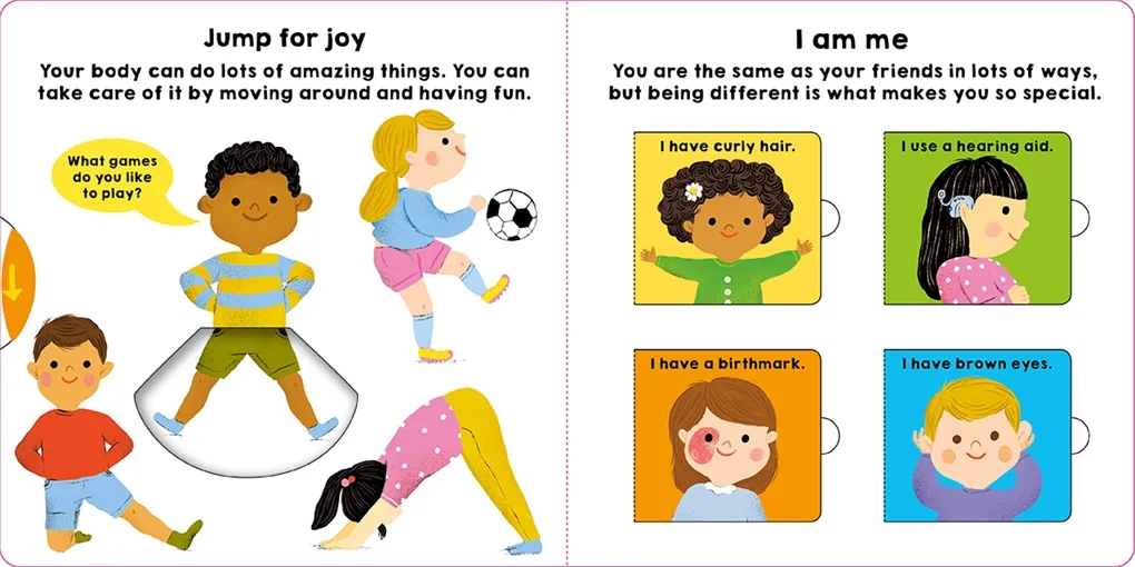 Обертайте коліщатка, висувайте вкладки та відкривайте віконця, щоб дізнатися більше про тіло, його дивовижні можливості та про те, чому бути унікальним – це так особливо!