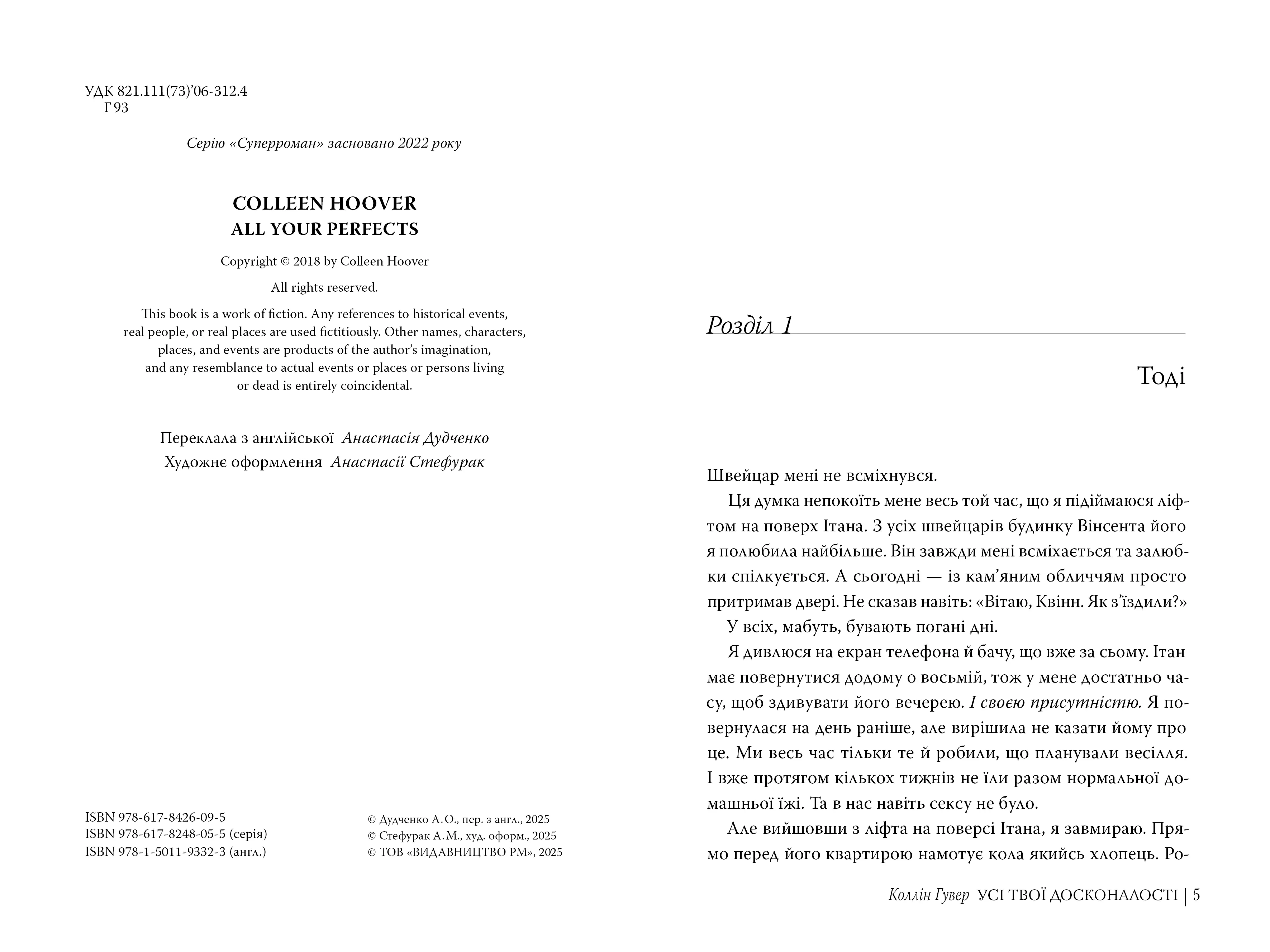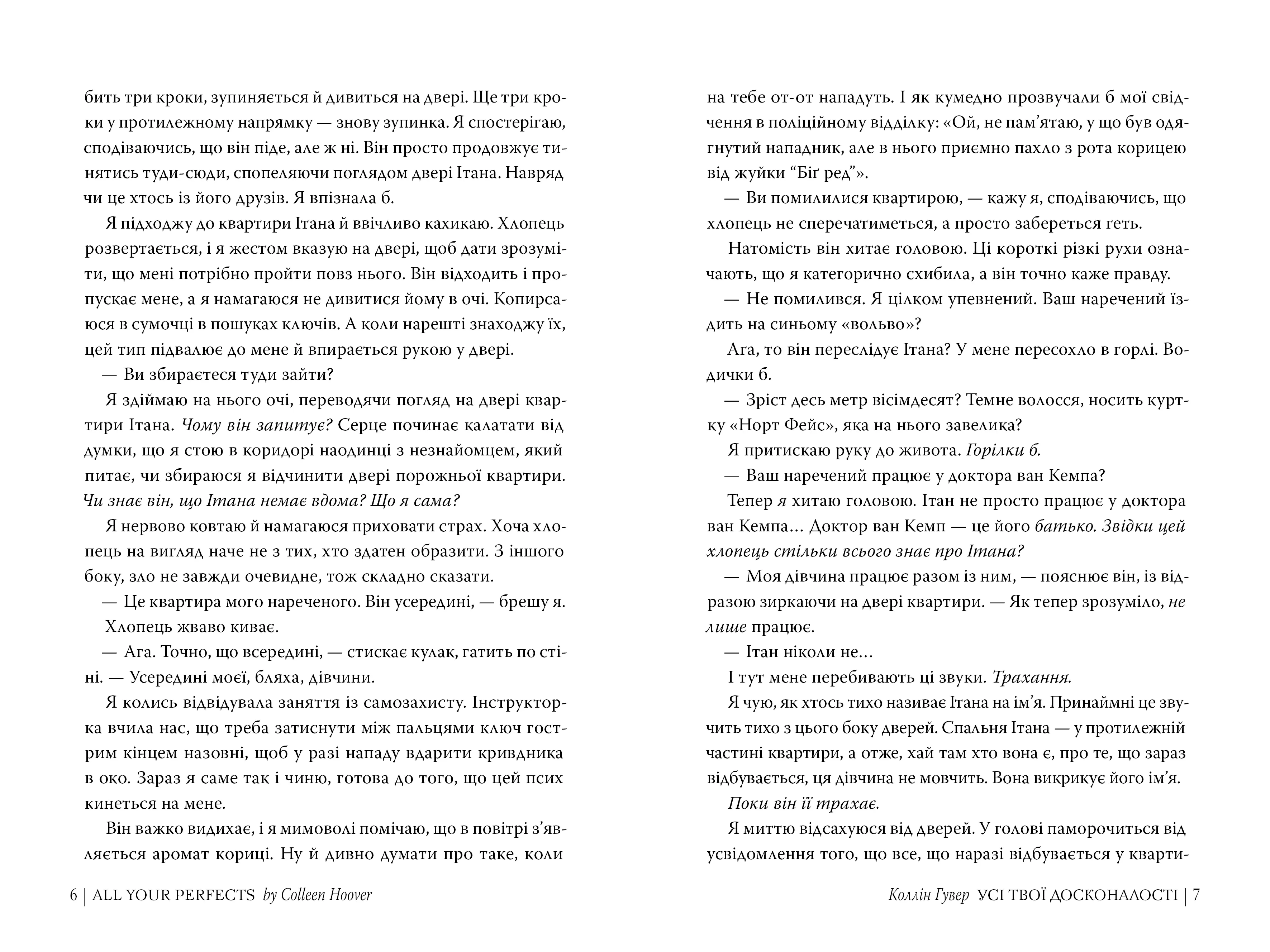 Коллін Гувер – відома американська письменниця, авторка численних бестселерів. Її книги емоційні, правдиві та наповнені глибокими почуттями. "Усі твої досконалості" – один із найсильніших любовних романів, що торкається теми шлюбу, розчарувань і сподівань.