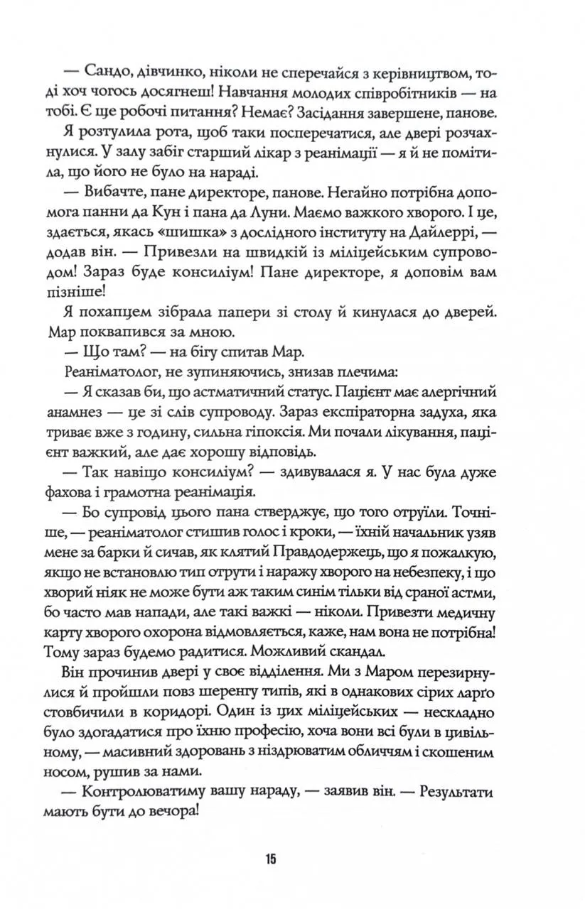 Головною героїнею роману є лікарка Санда – жінка, яку суспільство вважає неповноцінною. Вона мимоволі опиняється в епіцентрі розслідування, керованого офіцером Комітету Спасіння Нації – да Ліґаррою. Разом вони знаходять сліди змови, що відкриває правду, яка може змінити світ.