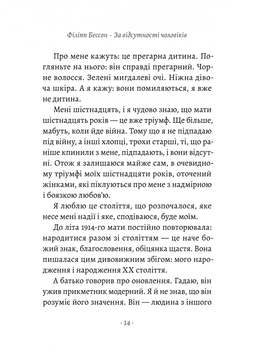 Філіпп Бессон – відомий французький письменник, чиї романи занурюють читачів у глибокі почуття та історичну атмосферу. 'За відсутності чоловіків' – це книга, що переносить нас у Париж 1916 року, коли війна змінює долі людей, а молоді серця відкривають для себе перші сильні почуття.