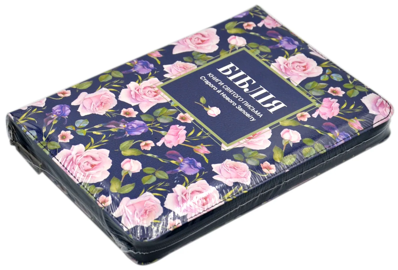 Щоб зробити Біблію ближчою до людини, Святе Письмо оформили у зручний формат. Книгу Старого й Нового Заповіту, грамотно перекладену українською мовою із давньоєврейської й грецької, "вдягнули" у тематичну уквітчану м'яку обкладинку із замінника шкіри, яка точно сподобається жінкам та дівчатам. Надійна застібка надовго збереже Ваші молитви від впливу зовнішніх факторів, а формат А-5 посяде своє місце у дамській сумочці чи дитячому рюкзаку. Для зручності читання Біблії текст в ній розташований у дві колонки з паралельними місцями посередині, виноски-пояснення розміщені внизу сторінки, кольорові мапи – на форзацах видання.