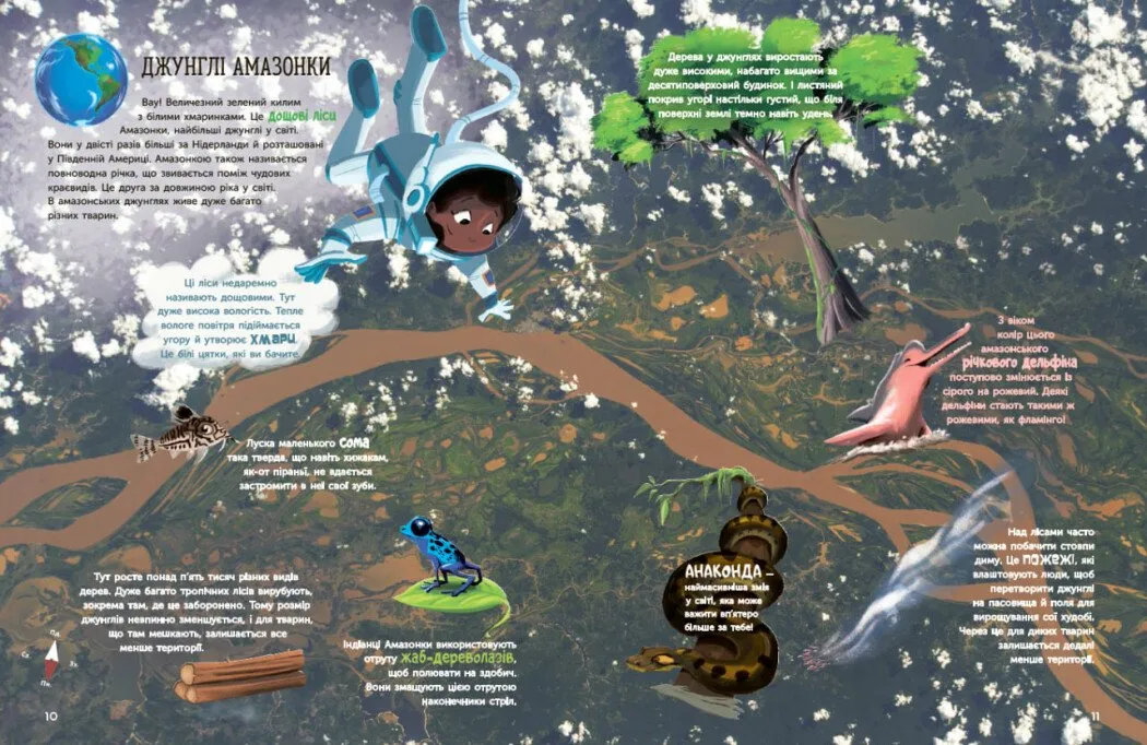 - Барвисті ілюстрації та цікаві факти про природу, географію та культуру.