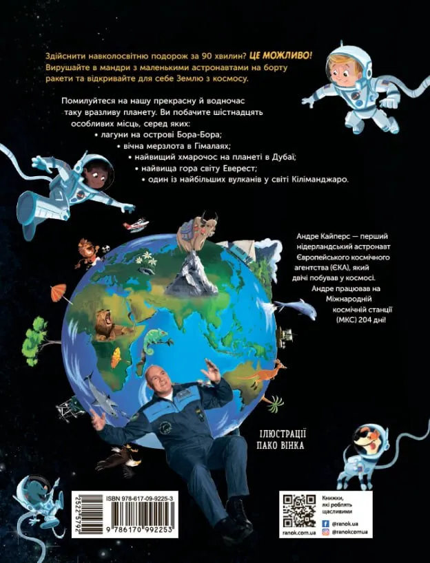 "Атлас Землі" — це унікальна книга, що поєднує в собі атлас, енциклопедію та космічну пригоду. Андре Кайперс, астронавт та фотограф, запрошує читачів у навколосвітню подорож тривалістю 90 хвилин, під час якої можна побачити нашу планету з висоти орбітального польоту.