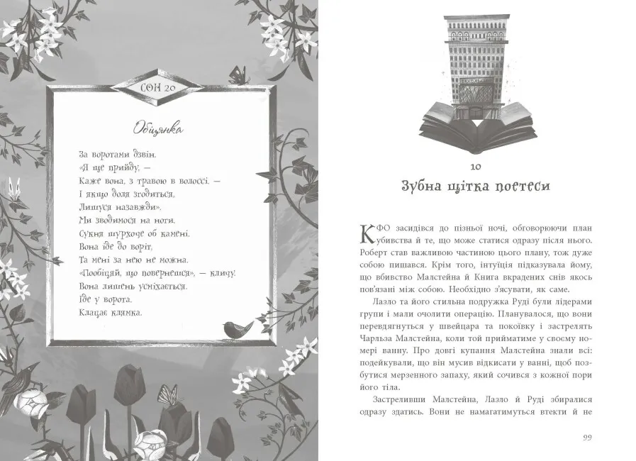 У Рейчел і Роберта нудне сіре життя. Власне, як і в усіх у країні Краснії, бо там править жорстокий криводушний президент. Він з’явився нізвідки й тепер контролює все. З ним немає сенсу боротися — лише життя згубиш. З ним немає сенсу говорити — позбудешся язика. Можна лише залишитися і страждати… або ж утекти.Та несподівано Рейчел і Роберт опиняються сам-на-сам із цілим світом, а з ними й страшенна смертельна таємниця. І коли діти розкривають правду, то розуміють: вони зроблять все, щоб вберегти її. Адже спасіння цілої країни в книжці! І не просто в якійсь книжці, а в таємничій «Книзі вкрадених снів», яку їхній батько-бібліотекар поцупив попри заборону. Чи вдасться дітям здійснити зухвалий план? Чи є в Краснії надія?
