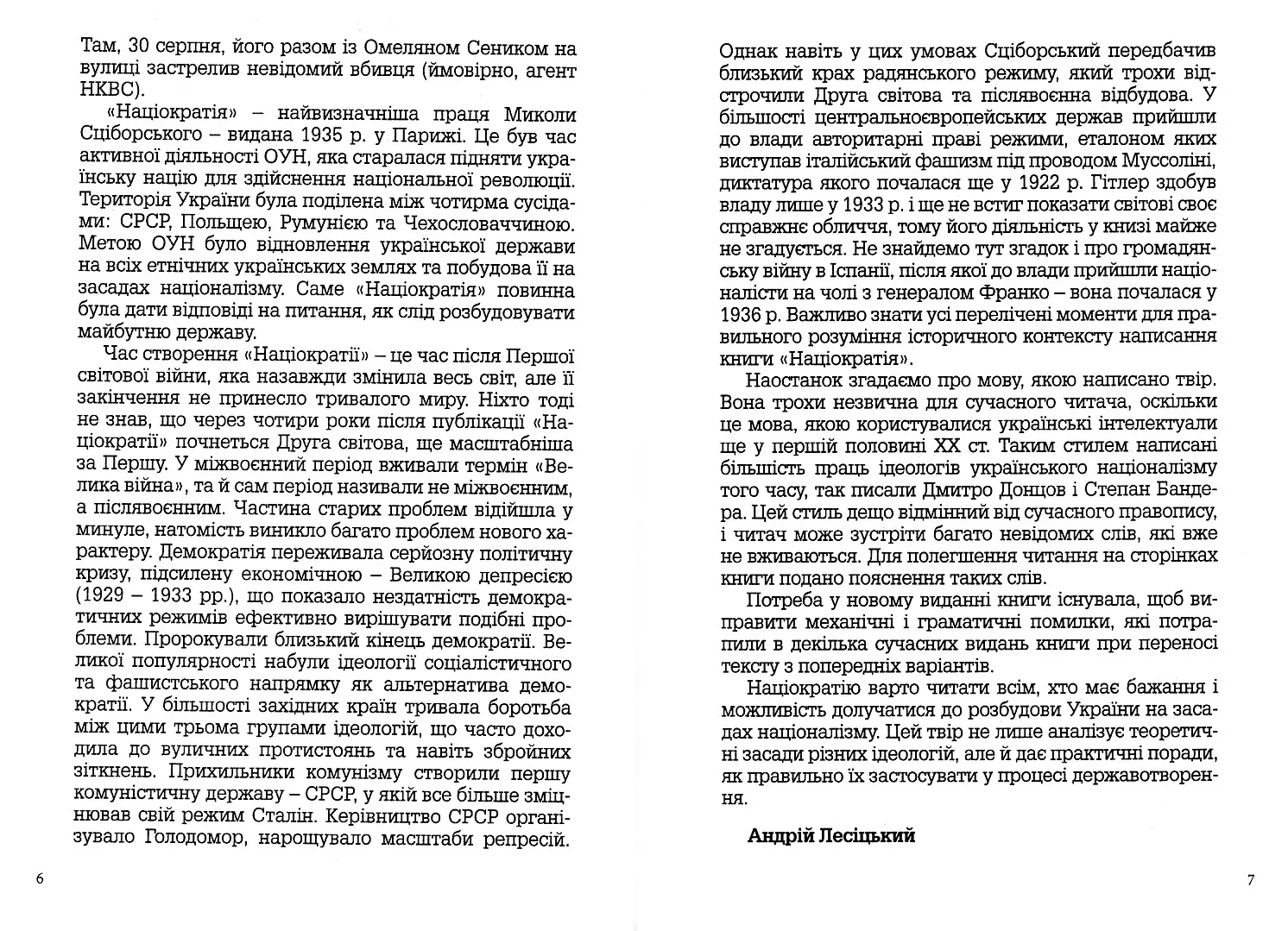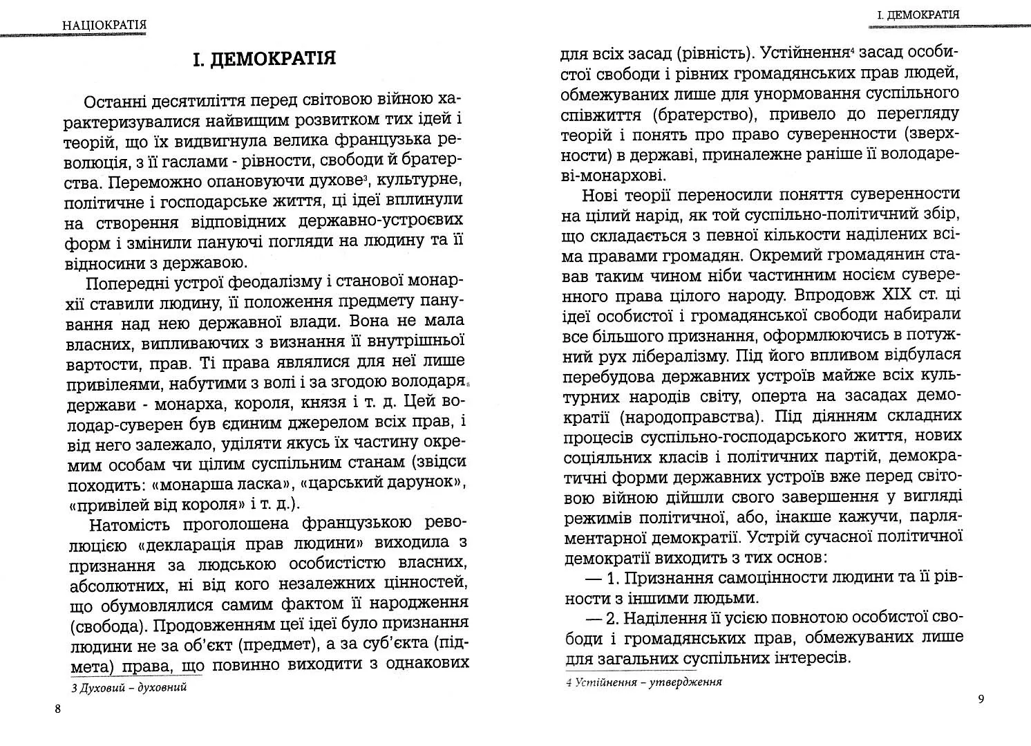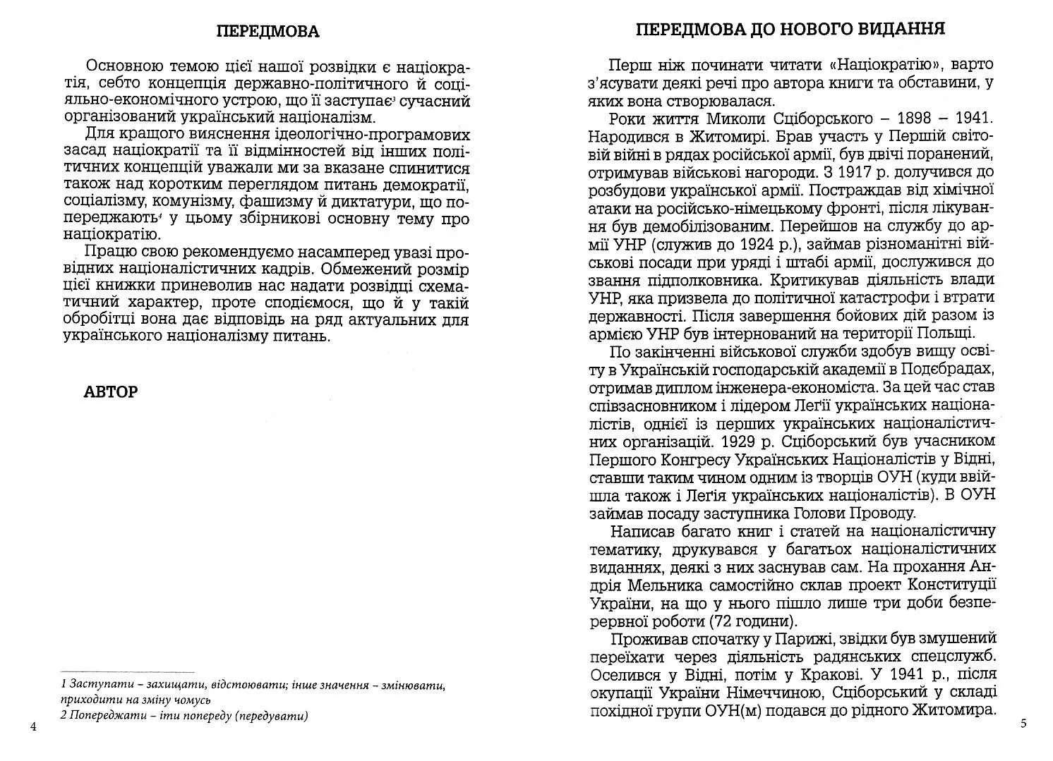 «Основною темою цієї нашої розвідки є націократія, себто концепція державно-політичного й соціяльно-економічного устрою, що її заступає сучасний організований український націоналізм.