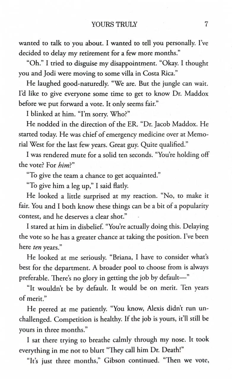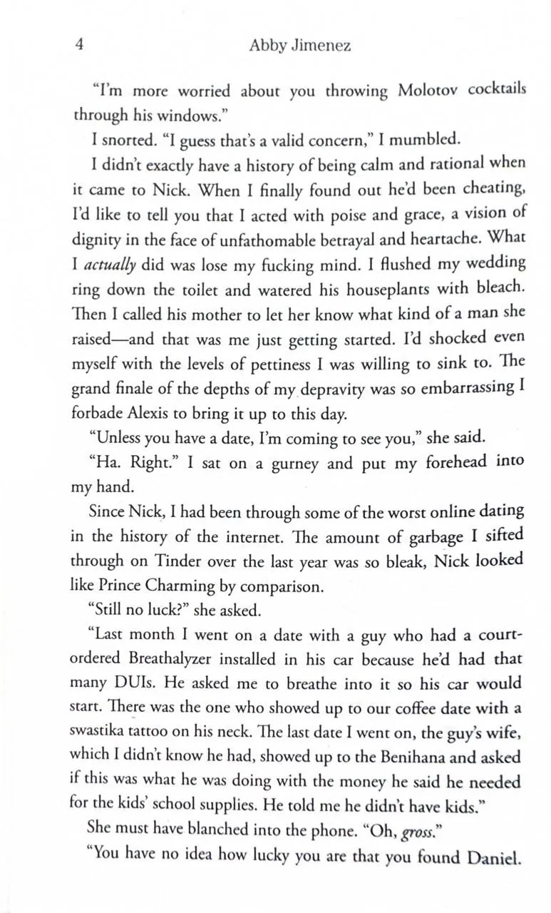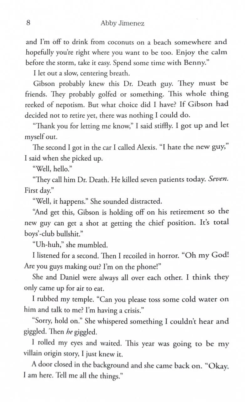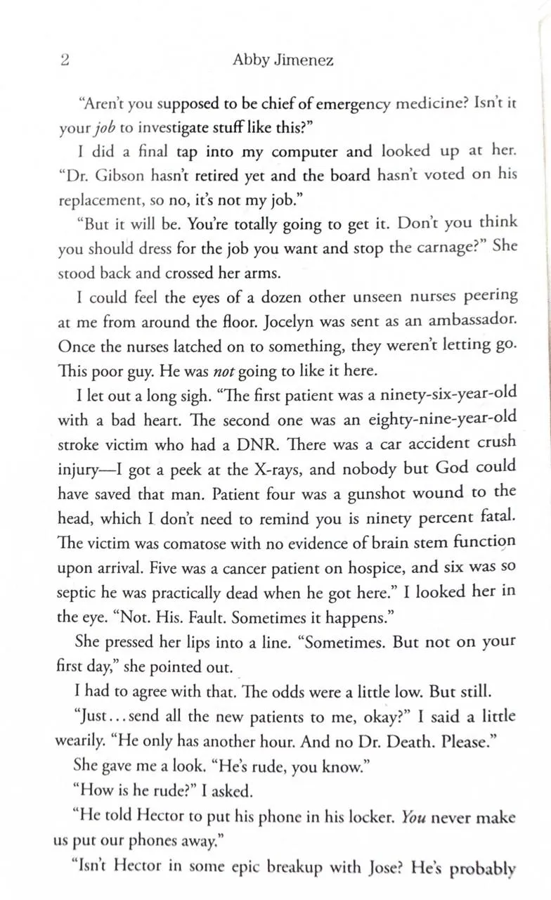 A novel of terrible first impressions, hilarious second chances, and the joy in finding your perfect match. Dr. Briana Ortiz’s life is seriously flatlining. Her divorce is just about finalized, her brother’s running out of time to find a kidney donor, and that promotion she wants? Oh, that’s probably going to the new man-doctor who’s already registering eighty-friggin’-seven on Briana’s “pain in my ass” scale. But just when all systems are set to hate, Dr. Jacob Maddox completely flips the game . . . by sending Briana a letter. And it’s a really good letter. Like the kind that proves that Jacob isn’t actually Satan. Worse, he might be this fantastically funny and subversively likeable guy who’s terrible at first impressions. Because suddenly he and Bri are exchanging letters, sharing lunch dates in her “sob closet,” and discussing the merits of freakishly tiny horses. But when Jacob decides to give Briana the best gift imaginable—a kidney for her brother—she wonders just how she can resist this quietly sexy new doctor . . . especially when he calls in a favor she can’t refuse.