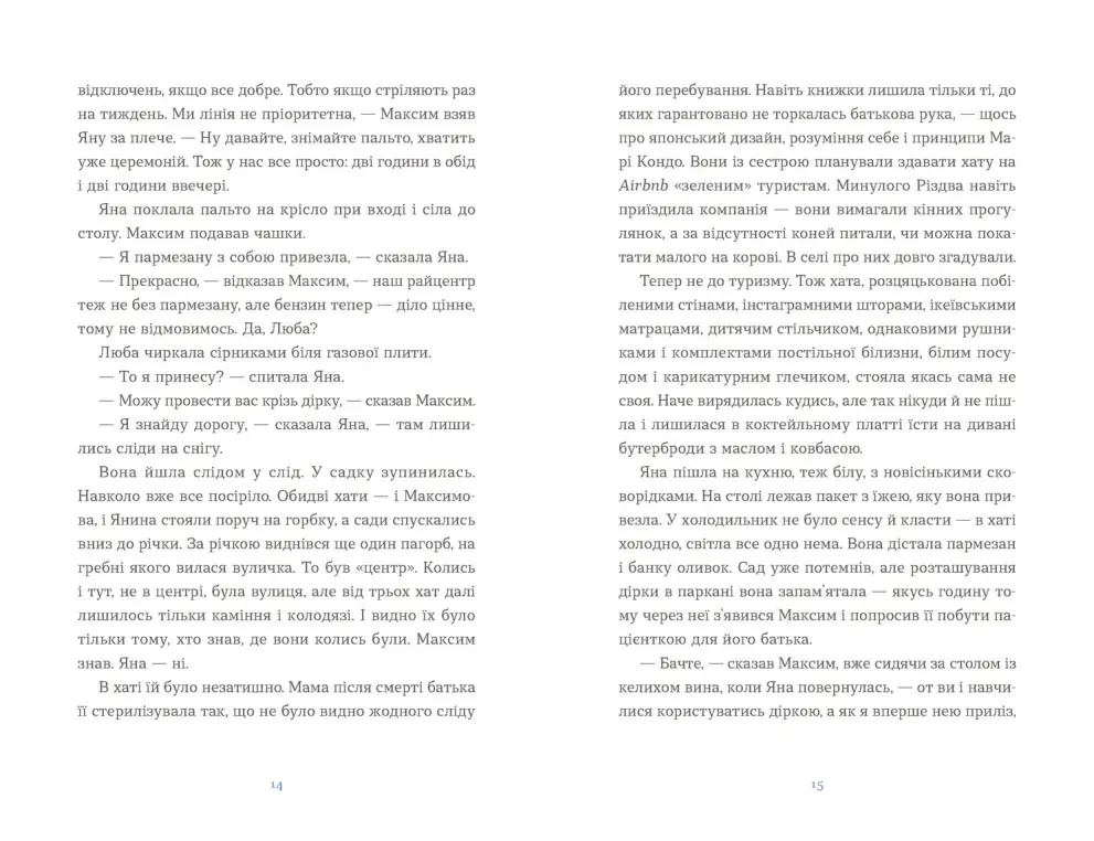Події розгортаються у зимовий період, коли час здається застиглим, а люди змушені приймати складні рішення. Головна героїня, Яна, занурюється в непрості дилеми, де немає однозначних відповідей. Атмосфера твору наповнена глибоким символізмом – засніжені очерети Дніпра, темні хати та традиції, що межують між життям і світом духів.