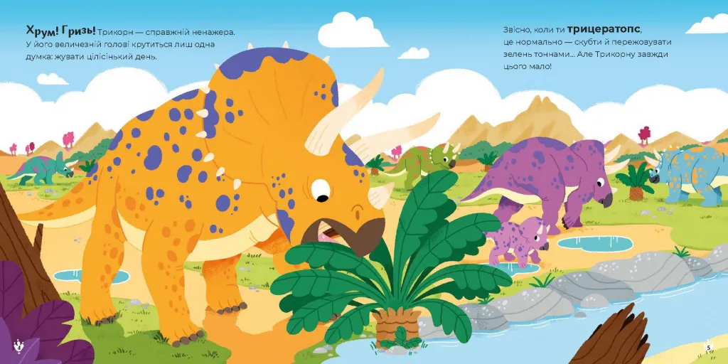 - Трицератопс Трикорн – справжній гурман, який любить квіти. Але що трапиться, якщо хтось захоче поласувати його улюбленими смаколиками?