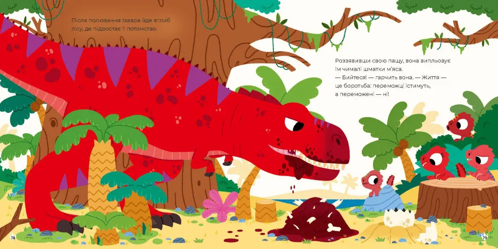 - Яскраві ілюстрації роблять занурення у світ динозаврів ще більш реалістичним.