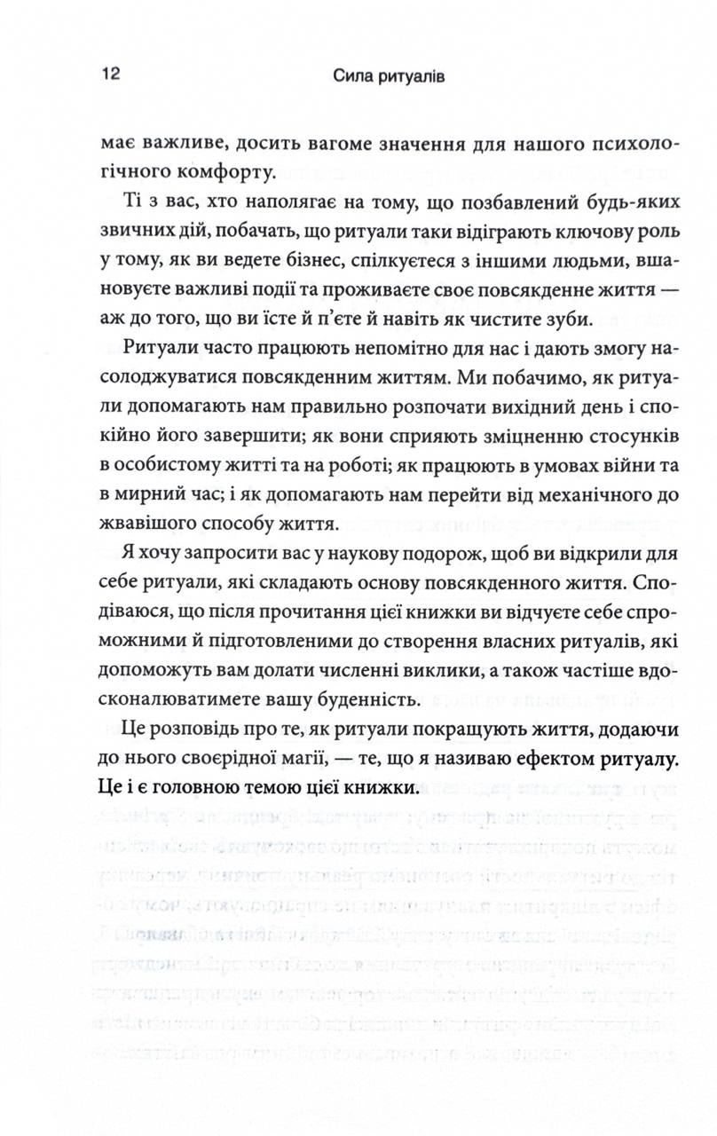 Життя кожної людини наповнене маленькими повсякденними діями: приготування сніданку, спілкування з рідними, щоденні прогулянки. Але чи можемо ми використовувати ці ритуали собі на користь? У своїй книзі "Ефект ритуалів. Від звички до ритуалу: використовуйте дивовижну силу повсякденних дій" Майкл Нортон разом із провідними вченими дослідив вплив ритуалів на наше життя.