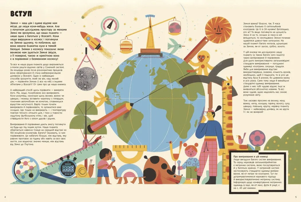 Видання містить цікаві факти у форматі порівнянь: від полярних шапок до глибин океану, від найвищих гір до гарячих пустель. За допомогою яскравих інфографік ви дізнаєтеся:
