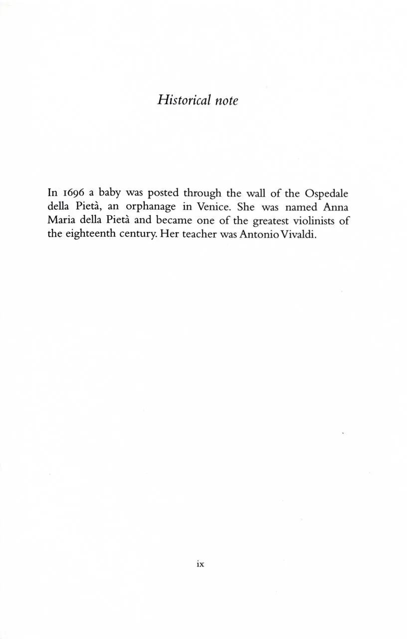 Але в неї є музика. І Антоніо Вівальді — її вчитель, наставник, геній.