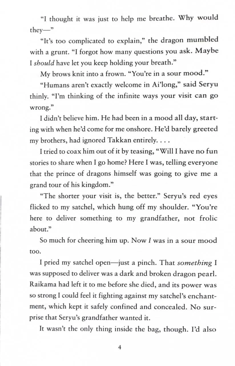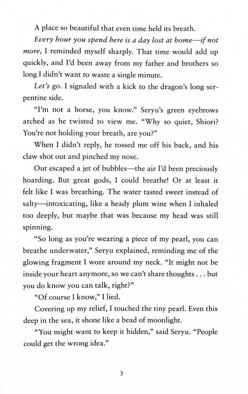 Щоб виконати свою місію, Шіорі має дістатися королівства драконів, пережити політичні інтриги серед людей і безсмертних істот, боротися з мисливцями за силою перлини та водночас зберігати образ ідеальної принцеси, аби не стати жертвою переслідування за магію, що тече в її крові.