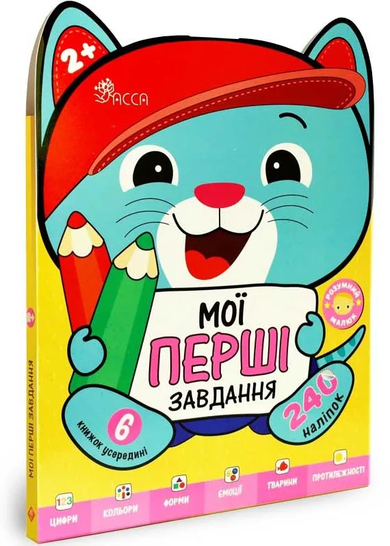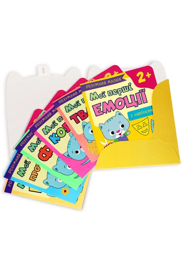 Дитина спілкується з улюбленим героєм — кумедним кошеням, яке супроводжує її в кожній книзі. Разом вони розфарбовують малюнки, клеять великі наліпки, вивчають цифри, емоції, кольори, форми та тваринний світ. Ігровий метод навчання допомагає краще засвоювати нові знання та розвиває уяву.