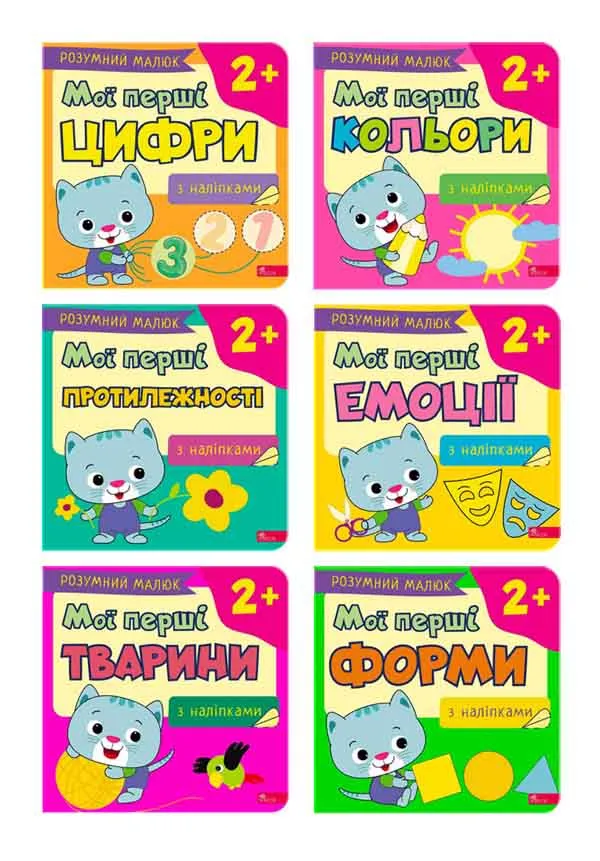 Комплект Розумний малюк. Мої перші знання — це чудове рішення для батьків, які бажають розвивати інтелект та творчі здібності дитини з раннього віку. Автор серії — Ірма Пікієне, відома дитяча письменниця та фахівець з педагогіки. Ця добірка книжок з наліпками створена спеціально для малюків від 2 років.