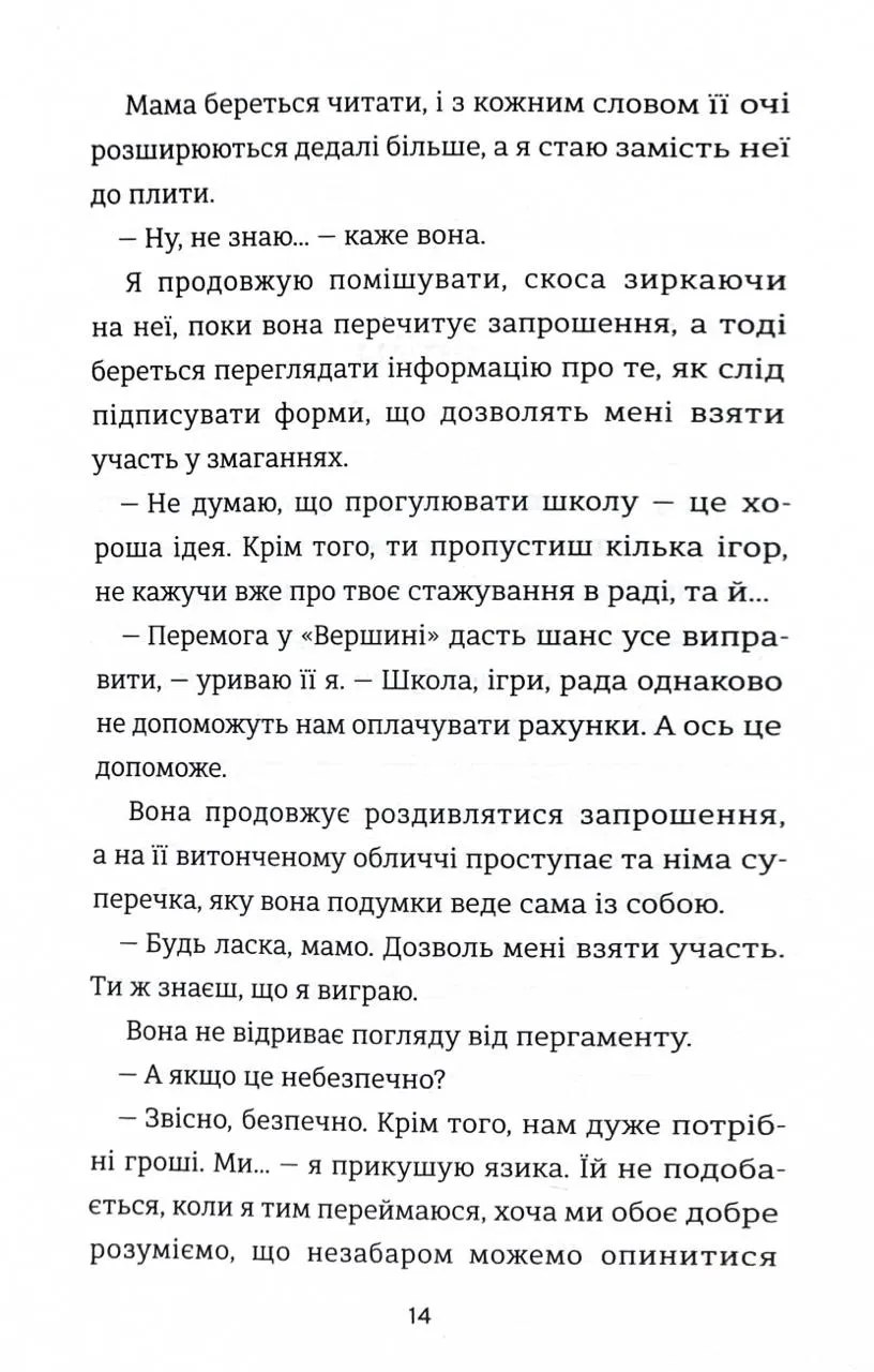 Венді Кросс майстерно розгортає напругу під час змагання та поступово відкриває читачеві справжню суть шоу. Якщо вам подобаються динамічні сюжети, непередбачувані повороти та глибока психологія героїв — ця книга точно вам підійде.