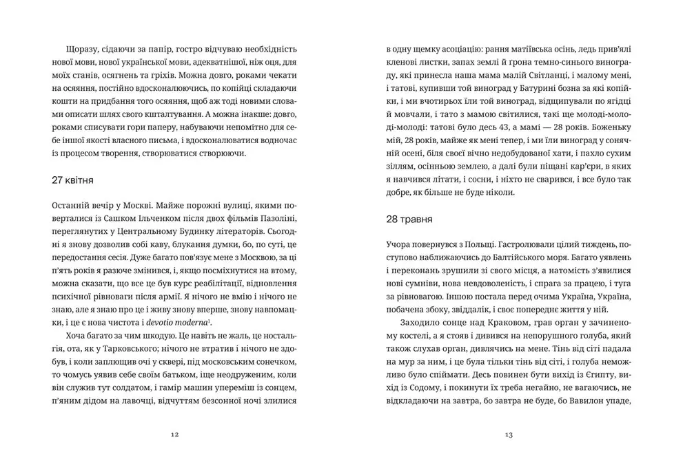 У своїх записах Москалець не зосереджується на буденних подіях – натомість вони розгортаються у простір пошуку духовної рівноваги, істинної самості та естетичного світобачення. Автор заглиблюється в теми: