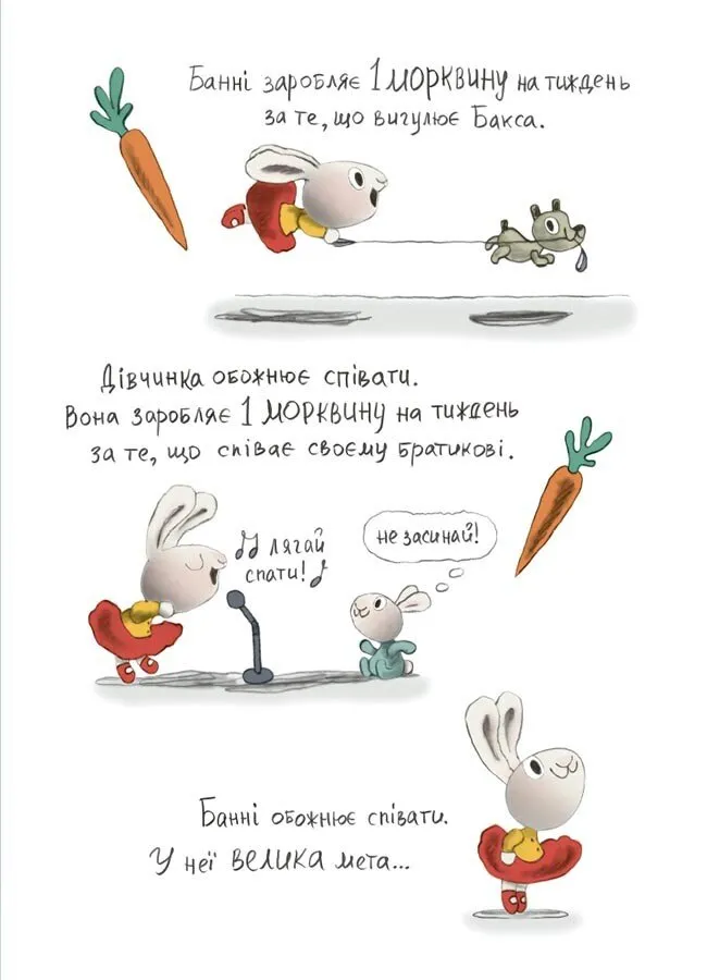 Матуся Банні розповідає доньці просту, але дуже важливу істину — щоб отримати гроші, потрібно працювати. Банні прагне реалізувати свої мрії, і з кожною сторінкою дізнається, що розрахунки, планування та зусилля — ключ до успіху. Вона хоче бути зіркою і розуміє, що шлях до мрії починається з відповідального ставлення до фінансів.