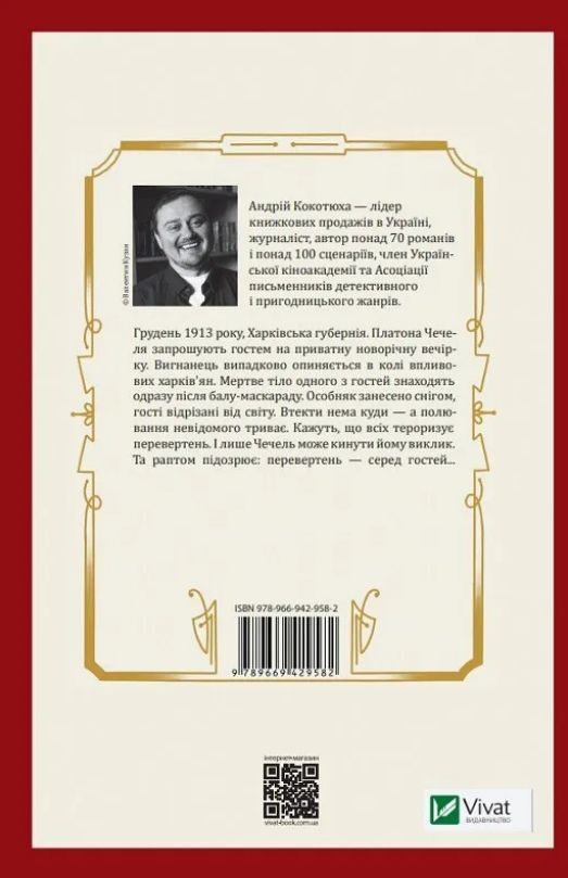 Грудень 1913 року, Харківська губернія. Платона Чечеля запрошують гостем на приватну новорічну вечірку. Вигнанець випадково опиняється в колі впливових харків’ян. Тіло одного з гостей знаходять одразу після балу-маскараду. Особняк занесено снігом, гості відрізані від світу. Втекти нема куди — а полювання на гостей триває. Кажуть, що всіх тероризує перевертень. І лише Чечель може кинути вбивці виклик. Та раптом підозрює:перевертень — серед гостей…