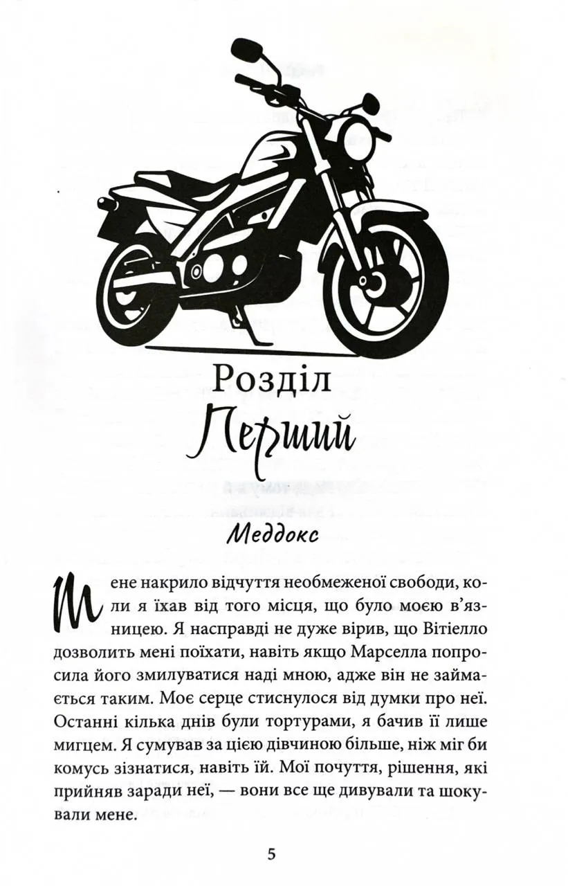Меддокс ніколи не знав, що таке любов. Він любив лише швидкість і дорогу, поки в його житті не з’явилася Марселла. Вона змінила його світогляд і змусила його зробити вибір. Тепер Меддокс готовий на все заради неї, навіть якщо всі обставини складаються проти них.