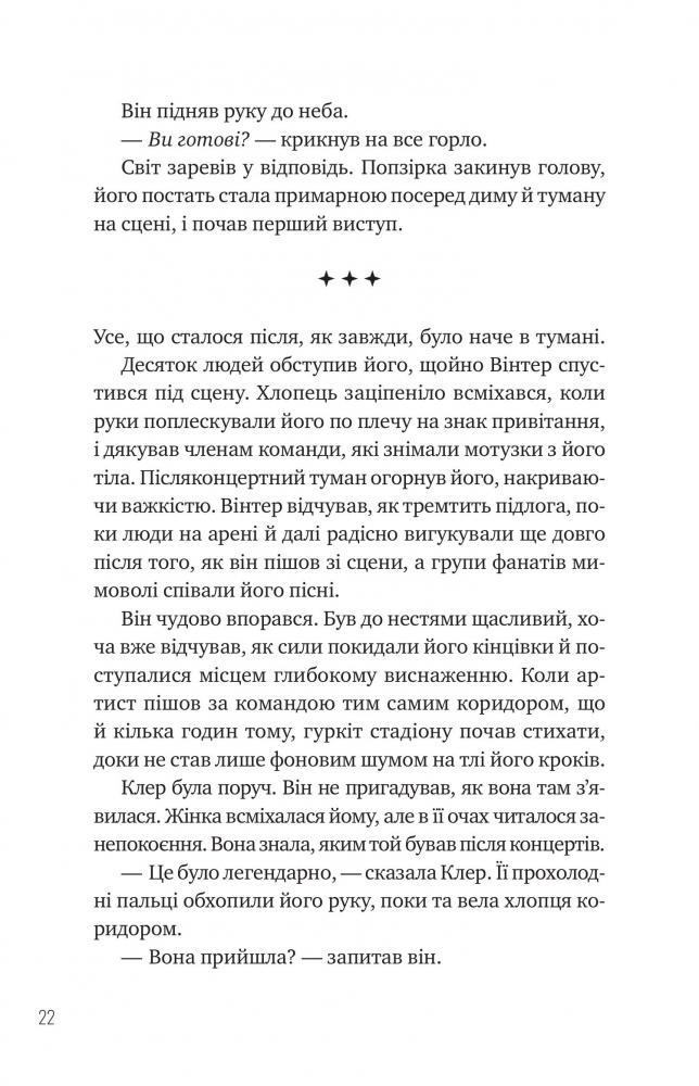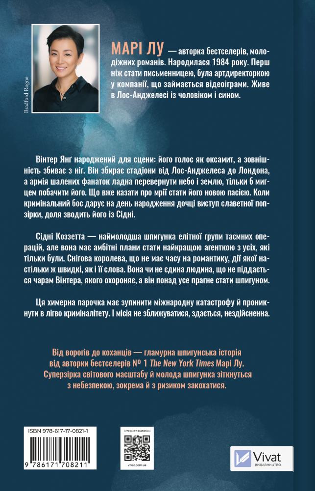 Книга «Зірки і дим» — це динамічний та романтичний технотрилер про кохання, що спалахнуло між шпигункою Сідні та попзіркою Вінтером під час виконання спільної таємної місії. Американська авторка Марі Лу розгорнула гострий сюжет, в якому на читачів очікують неймовірні інтриги, секрети, атмосфера романтики й шпигунства.
