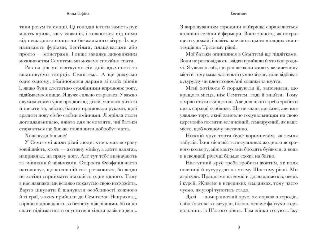 Майбутнє — це коли починають здійснюватися найоптимістичніші прогнози песимістів. Семптем — футуристичне семирівневе місто, що захищає мешканців від небезпечного зовнішнього світу. Кожен рівень має своє призначення та особливості: що вищий рівень, то краща якість життя. Перейти з нижчого рівня на вищий майже неможливо, але Ірисі це вдалося, адже її призначили доглядальницею немовляти в сім’ї винахідників з другого рівня. Та не встигла дівчина звикнути до нового життя, як почалися жахливі події: містом шириться загадкова смертоносна хвороба, а загарбники скористалися нагодою і намагаються захопити Семптем. Ірисі доводиться рятувати не лише немовля, а й ціле місто. А ще стрімко дорослішати, знаходити союзників, ухвалювати складні рішення та слідувати цінностям у світі, де подеколи важко збагнути, хто свій, а хто чужий.