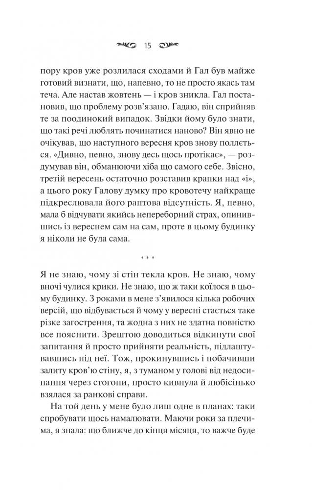 Книга «Вересневий дім» — це паранормальний трилер про одержимий будинок від американської письменниці Карісси Орландо. Подружжя Маргарет і Гала щасливе: роки життя в орендованих апартаментах закінчилися, а доля їм посміхнулася. Пара довго шукала будинок своєї мрії, тому вікторіанське помешкання на Готорн-стріт за знижкою виглядає, мов мрія. Рієлтор попереджає: там панує моторошна атмосфера, а кожного вересня дім стає місцем для надприродних явищ, що зводять із розуму.