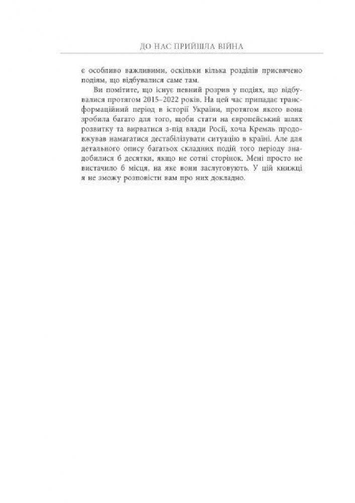 Коли я хочу знати, що відбувається в Україні, я передусім звертаюся до репортажів Кріса Міллера. Незалежно від того, ідеться про останню інформацію з передової лінії війни Росії проти України, глибокий аналіз політичних маневрів у Києві чи розуміння, що думає про поточні події середньостатистичний українець, Міллер завжди в курсі. Тепер у своїй захопливій книжці «До нас прийшла війна» цей видатний експерт із регіону висвітлює нам останні 12 років, розповідаючи про історію, культуру та контекст, аби допомогти зрозуміти, де перебуває Україна.