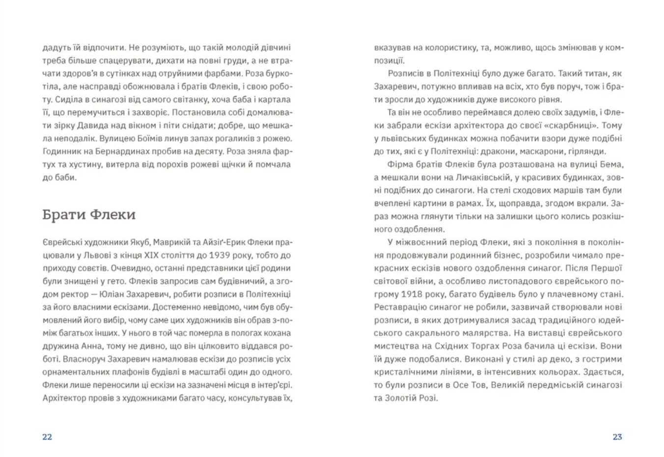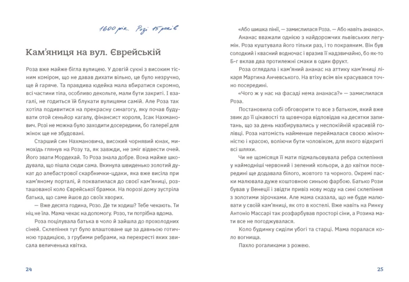 Ця книжка — своєрідний роман у нарисах, і в них крізь призму часу ми бачимо Львів ренесансний, міжвоєнний, сучасний. Львів, у якому розгортаються три сюжетні лінії про долі трьох дівчат, які жили у різні часи, але мали багато спільного, та найбільше їх поєднувала синагога Золота Роза.