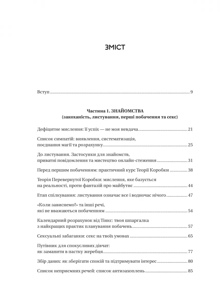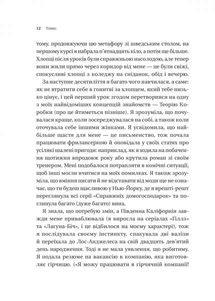 Замість того, щоб пристосовуватися до очікувань інших, ця книга вчить бачити у взаємодії з людьми можливість краще пізнати себе. Тінкс наголошує: якщо на побаченні ви відчуваєте себе незручно, боїтеся бути собою — це сигнал припинити. Авторка закликає жінок відмовитися від шаблонів поведінки, які змушують соромитися сміху, їжі чи емоцій, і будувати життя, де головна героїня — це вони самі.