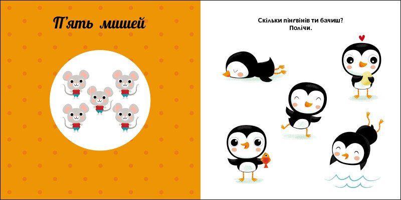 - На кожному розгорті добирається інша кількість кумедних звіряток для підрахунку.