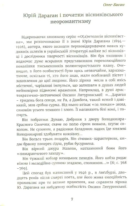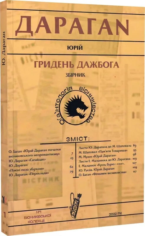 Видання представляє творчість і портрет одного з перших авторів літературної течії вісниківського неоромантизму, яка сформувалася на початку 1920-х рр. на ґрунті «мужесько-волюнтарної і конструктивно-творчої психології» (Є. Маланюк), в естетичному плані — на ґрунті динамічної неокласики та готично-романтичної героїки духу. Ідейним епіцентром і культурологічним тлом для неї були журнали «Літературно-науковий вістник» і «Вістник»Збірник склали всі на сьогодні відомі поезії Ю. Дарагана, його листи та листи Є. Маланюка до нього, спогади про автора М. Шаповала, М. Мухина, Є. Маланюка.Книга рекомендується для літературознавців, культурологів, істориків, широкого кола шанувальників українського красного письменства.