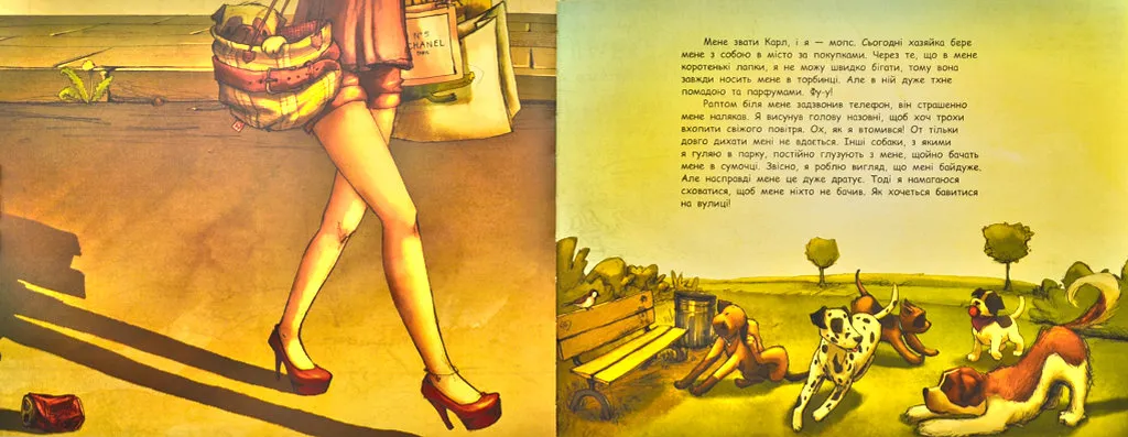 Карл — це мопс, якого до нестями любить хазяйка. Якщо вони кудись вирушають, то його місце в її торбинці. Але одного дня хазяйка прив’язала Карла біля м’ясної крамниці. Ба неочікувано на телефон надійшов терміновий дзвінок. І хазяйка помчала вирішувати проблеми, забувши про песика. Що ж тепер буде з Карлом? Чи знайде він самотужки дорогу додому?