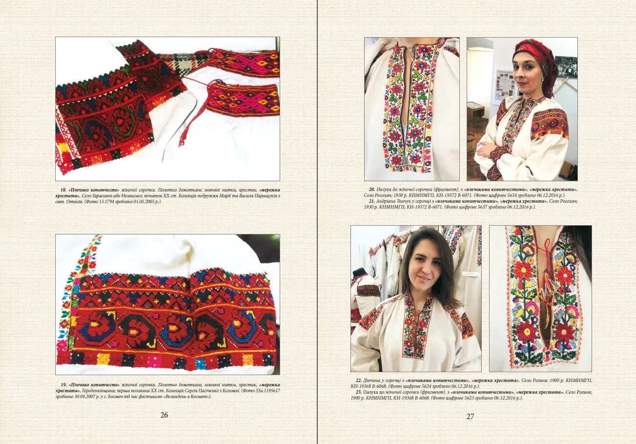 Навчальний посібник «Покутські вишивки Прикарпаття. Мистецтво геометричного орнаменту і колориту» є другим художнім альбомом із серії «вишивки Прикарпаття», який присвячений покутським узорам вишивок у техніці хрестика кінця ХІХ ст. — першої половини ХХ ст. та їх побутуванню впродовж ХХ ст. і на початку ХХІ ст. у ньому розглядаються різні взори покутських народних вишивок чоловічих, жіночих сорочок і «заборів» переміток та їх місцеві назви. Систематизовано взори на фітоморфні (рослинні), зооморфні (тваринні), за походженням, предметно-речові, космічні, цифрові. Посібник уміщає таблиці із розводами хрестикових узорів автентичних вишивок сорочок Городенківського району, а також авторських фотоілюстрацій автентичних вишивок і типажів у традиційному одязі Городенківського району Івано-Франківської області. Розглядається мистецтво геометричного орнаменту — орнаментальні мотиви та композиціії, варіанти побудови уставок жіночих сорочок чи пазух чоловічих сорочок. Відтворені автором узори, у вигляді «розводів» (рисунків, контурів узорів), подано на таблицях, а також на таблицях подано відтворені узори, заповнені кольоровими нитками. усі фотографії і таблиці пронумеровано та паспортизовано. Подано багато узорів для того, щоб побачити, як творилися різні варіанти класичних узорів, як мінялися кольори ниток при заповненні «розводів» у різний час і в різних селах. Процес творення узорів з простих орнаментальних мотивів може послужити майстер-класом для студентів на практичних заняттях. узори вишивок можуть бути творчо використані для розробки етнодизайну сучасного одягу в національних традиціях. Джерелами для пошуку автентичних вишивок послужили: фонди музеїв, поїздки в села, приватні колекції, виставки, фестивалі «Покутські джерела», «дністрові зорі», ювілейні свята сіл і міст Покуття. Введено рубрику «Географія орнаменту», тому що ми живемо в ХХІ ст. і локальні вишивки поширилися поза межі місцевостей, де вони були створені. Альбом розрахований на мистецтвознавців, етнографів, українознавців, краєзнавців, науковців, художників, музейників, викладачів і студентів мистецьких навчальних закладів і учнів шкіл для проведення уроків з краєзнавства, образотворчого мистецтва та художньої праці; колекціонерів, вишивальниць; керівників фольклорно-етнографічних колективів, як зразок для відтворення традиційного народного одягу початку ХХ ст.; а також для туристів, як корисний сувенір. Для кращої орієнтації про територію Покуття на початку кожного розділу альбому подано мапу відповідного району — Городенківського, тлумацького Івано-Франківської області.